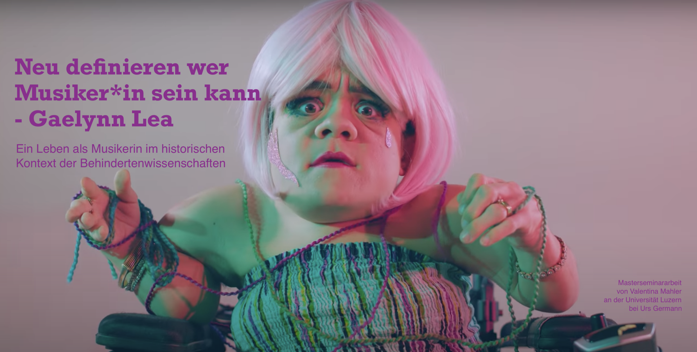 Anhand der Musikerin und Behindertenrechtlerin Gaelynn Lea aus Minnesota wird der Bezug zwischen Musik und Behinderung aufgezeigt. Ihr Leben und Wirken als Musikerin mit Behinderung wird mittels der Masterseminararbeit von Val Mahler genauer untersucht und im geschichtlichen Kontext der Behindertenwissenschaften verordnet.