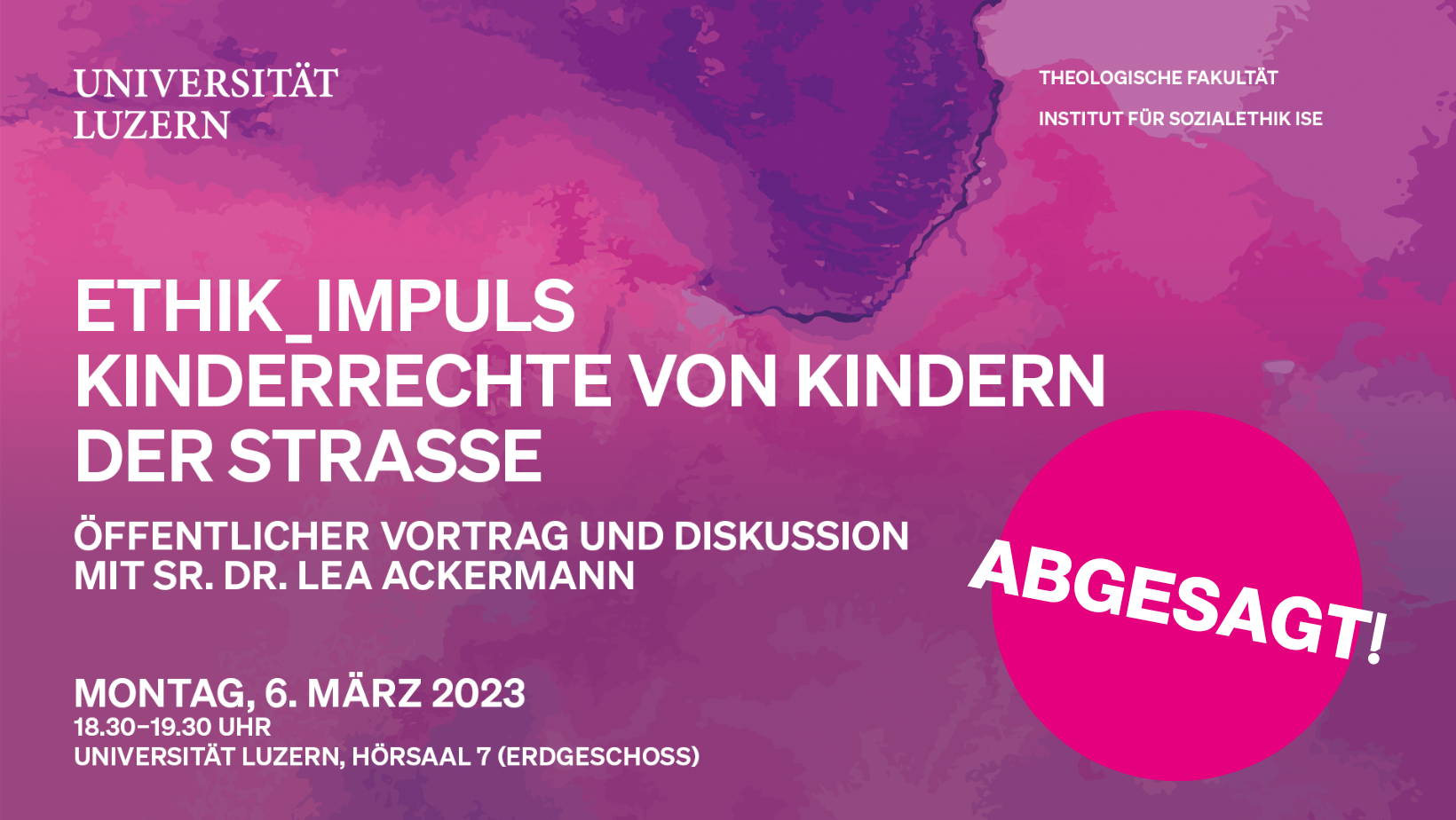 Der EthikImpuls vom 06. März 2023 mit Sr. Dr. Lea Ackermann musste leider krankheitsbedingt abgesagt werden.