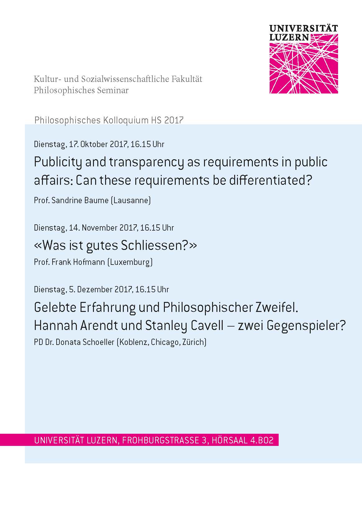 | Ort: | Universität Luzern, Frohburgstrasse 3, Hörsaal 4.B02 |