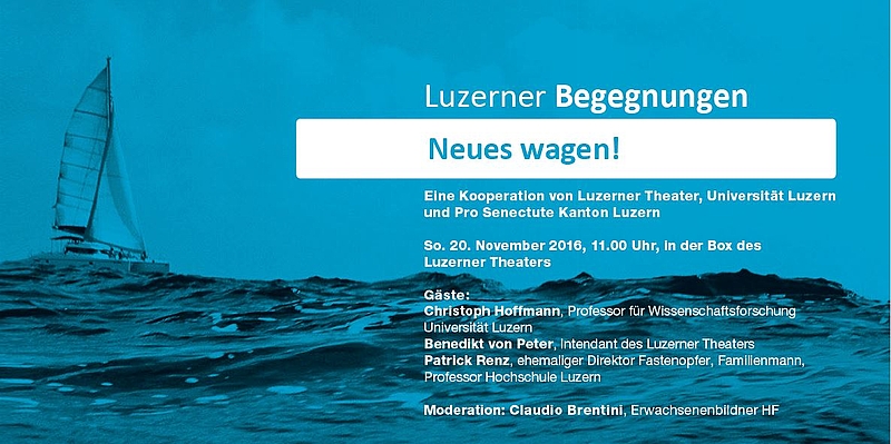 Am Sonntag, 20. November 2016, um 11 Uhr findet in der Box des Luzerner Theaters eine weitere Ausgabe der öffentlichen Gesprächsreihe "Luzerner Begegnungen" statt. Thema diesmal: "Neues wagen!".