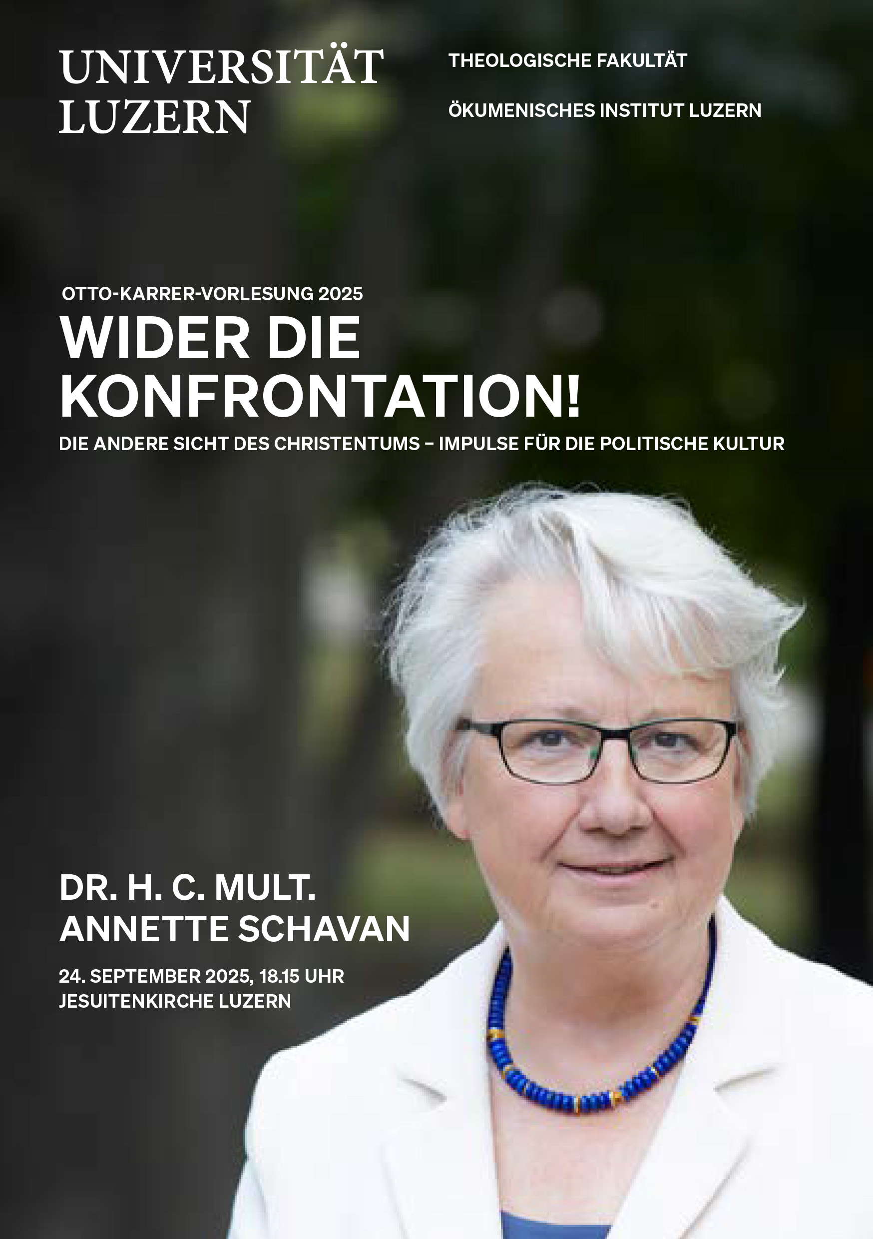 Die Theologische Fakultät Luzern und das Ökumenische Institut Luzern freuen sich sehr, dass Frau Dr. h.c. mult. Annette Schavan die Otto-Karrer-Vorlesung 2025 zu diesem drängenden und herausfordernden Thema hält. Annette Schavan war 25 Jahre in Politik und Diplomatie tätig, u.a. als Bundesministerin für Bildung und Forschung in Deutschland und als Botschafterin Deutschlands beim Hl. Stuhl. Heute ist sie die Vorstandsvorsitzende der Gemeinnützigen Hertie Stiftung.