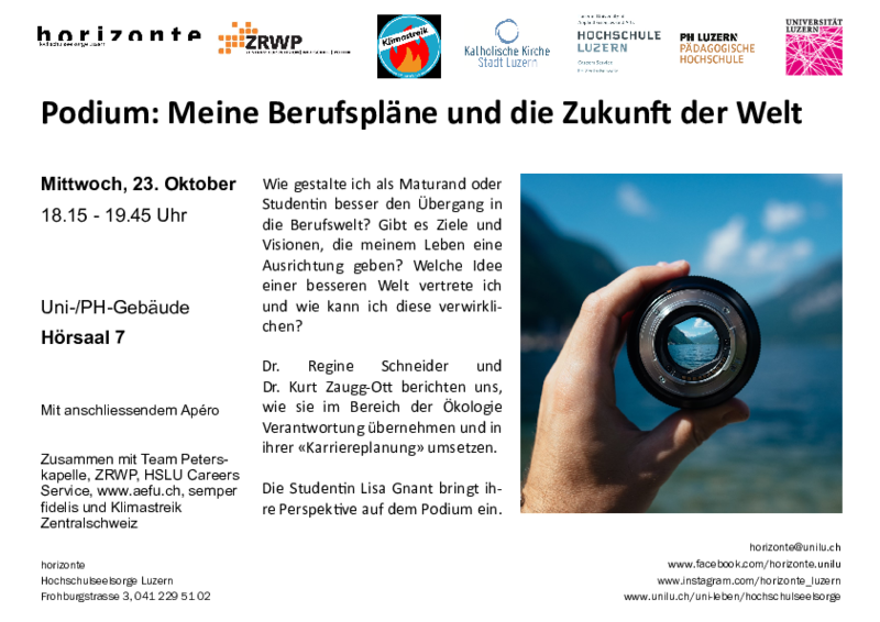Organisiert von horizonte, zusammen mit Team Peterskapelle, ZRWP, HSLU Careers Service und Klimastreik Zentralschweiz
