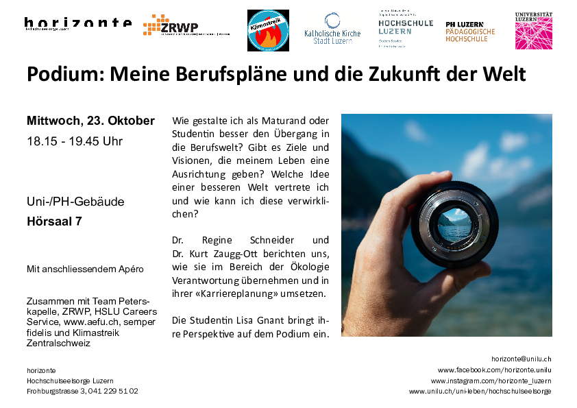 Organisiert von horizonte, zusammen mit Team Peterskapelle, ZRWP, HSLU Careers Service und Klimastreik Zentralschweiz