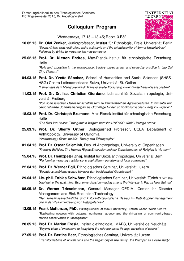 Forschungskolloquium des Ethnologischen Seminars: Frank Muttenzer, PhD, Visiting Scholar at McGill University, Indian Ocean World Centre