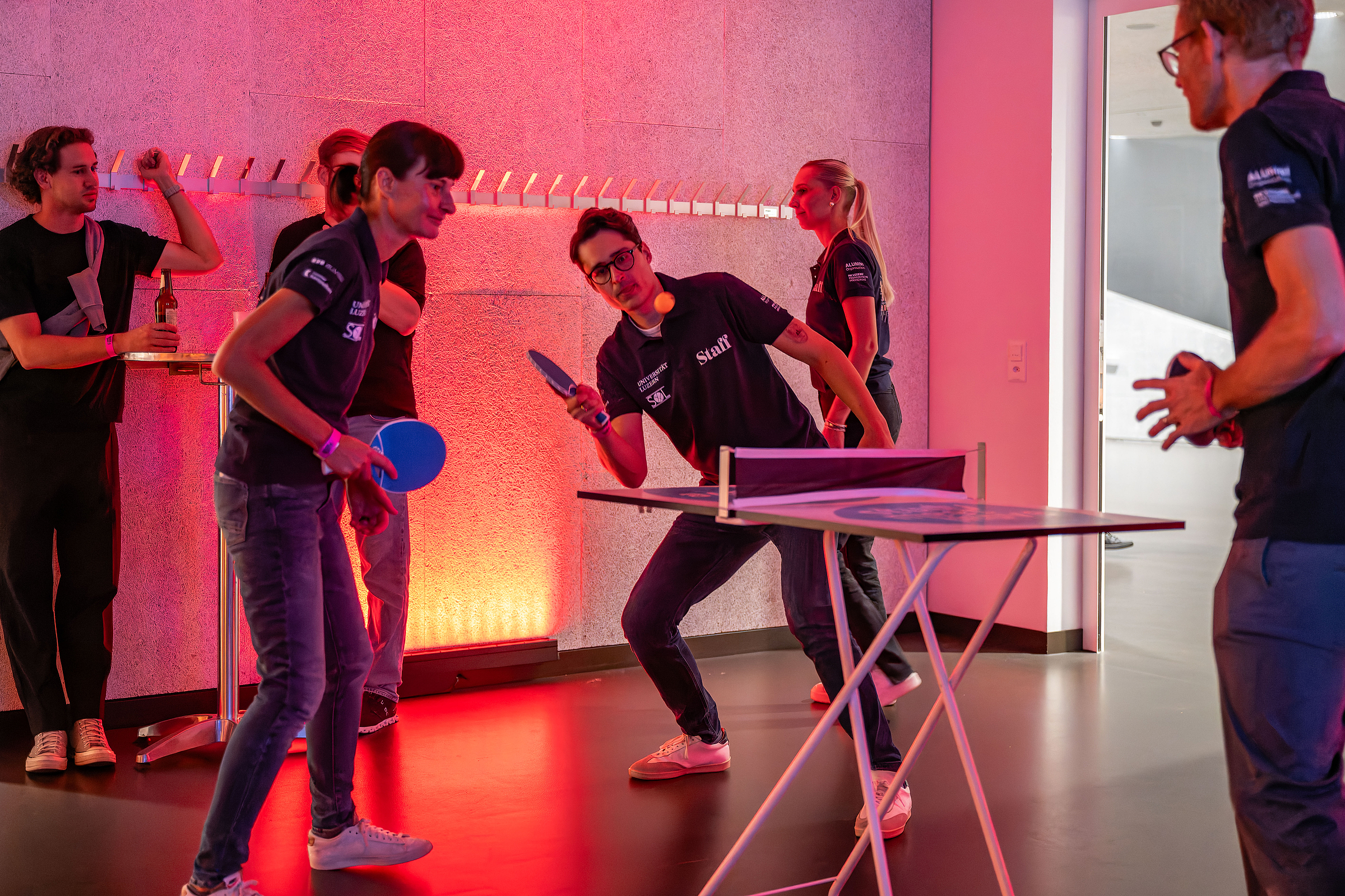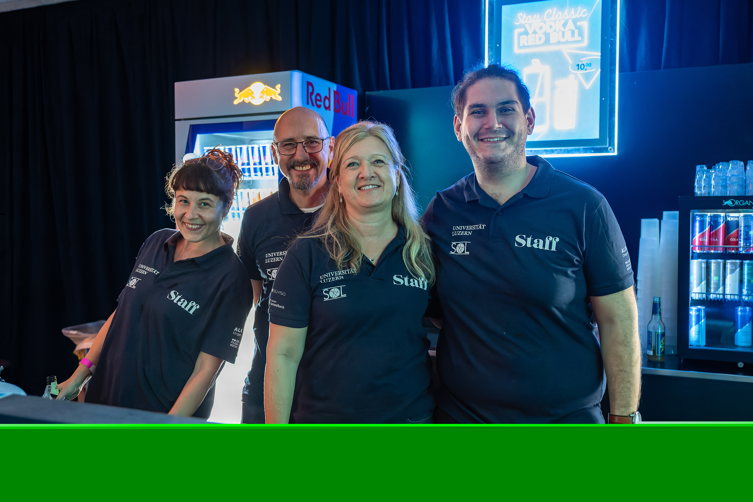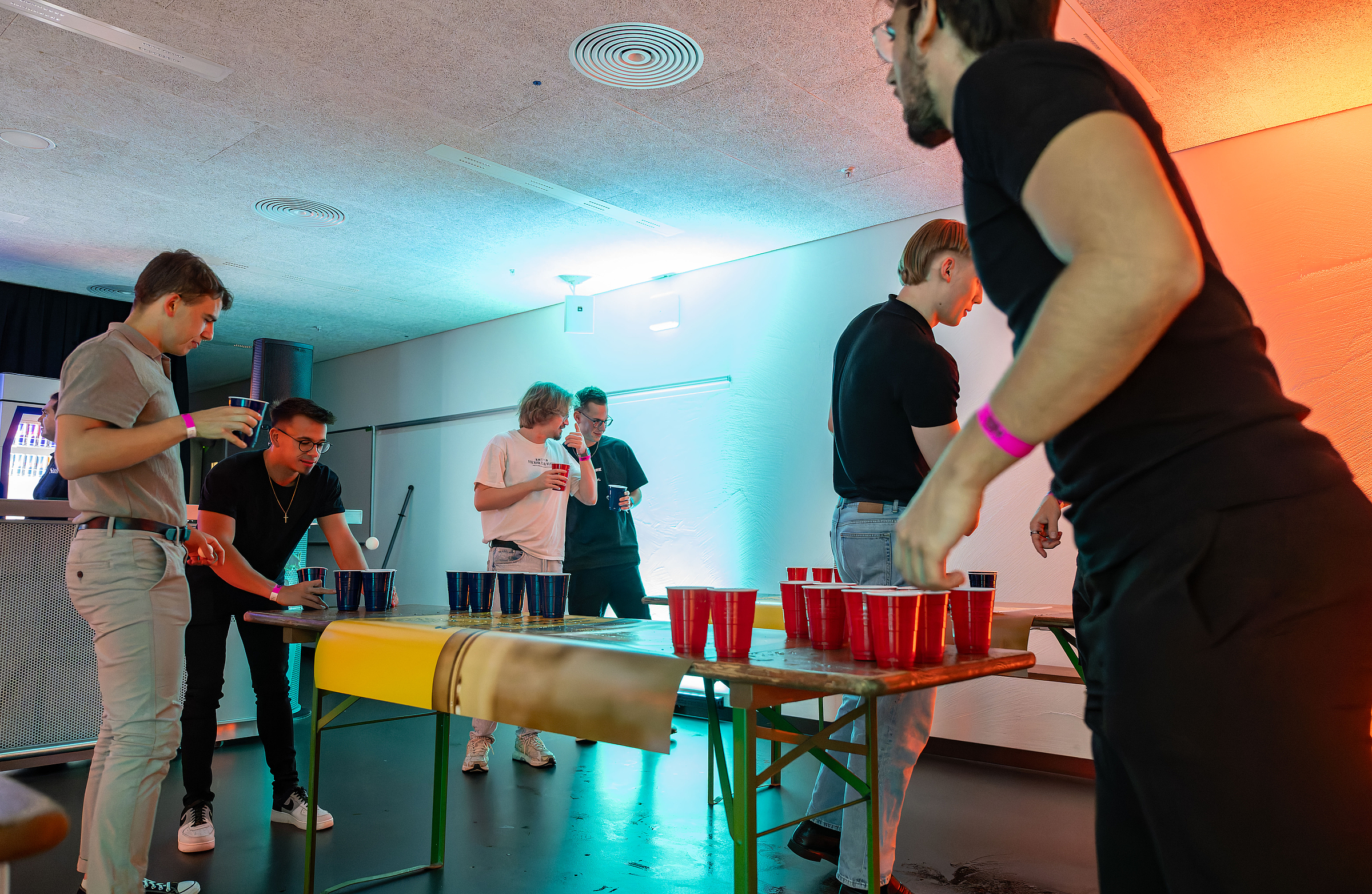 Mit verschiedenen Bars, an denen auch Professorinnen und Professoren, Dozierende und Mitglieder der Unileitung arbeiteten, Karaoke, Mini-Tischtennis und vielem mehr war für reichlich Abwechslung gesorgt. Und nicht zuletzt sorgte DJ Ecko für den passenden Soundtrack.