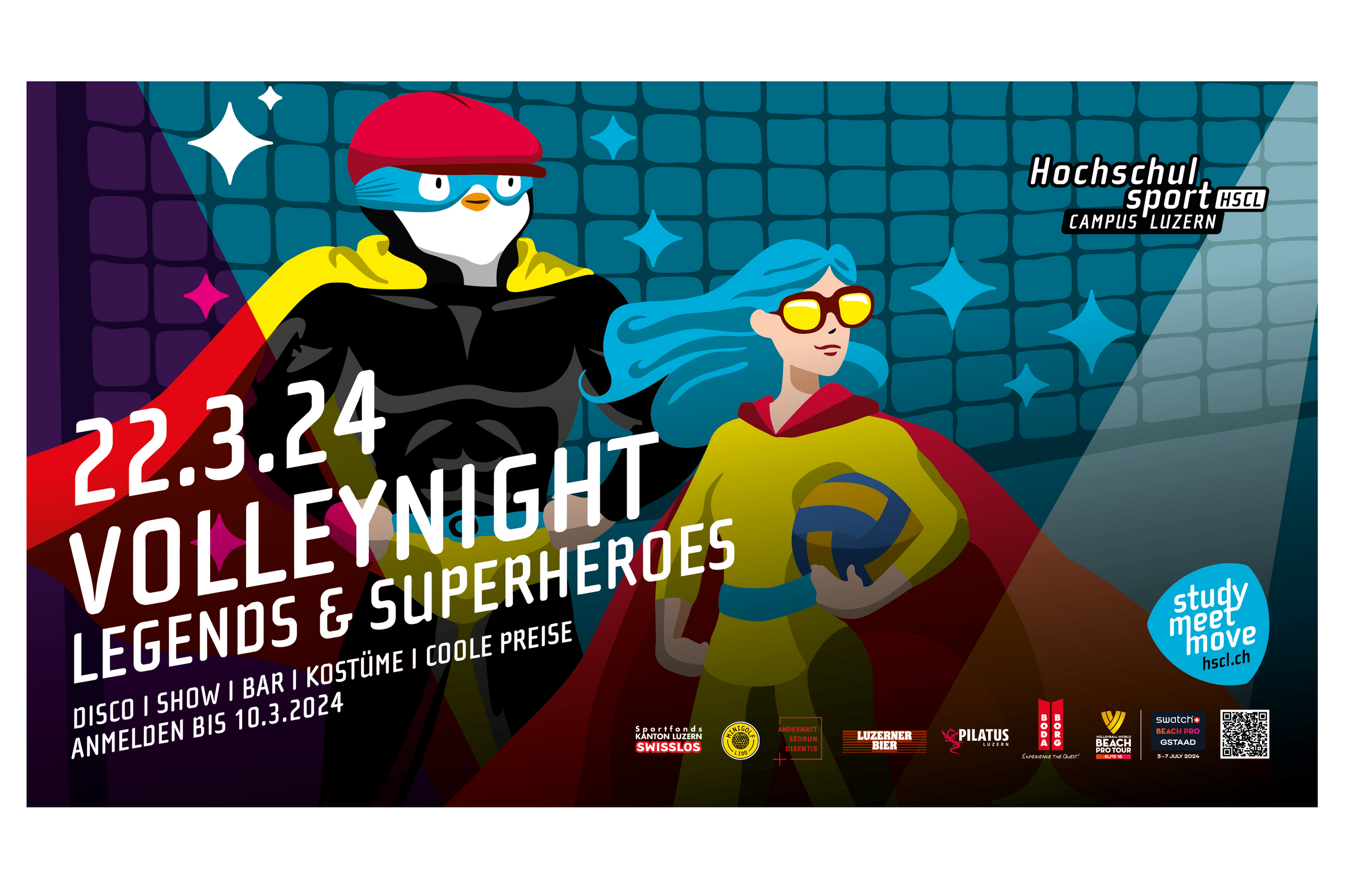 Die traditionelle Volleynight findet unter dem Motto "Legends & Superheroes" statt. Spannende Volleyballspiele werden kombiniert mit Partystimmung, cooler Musik, mottogerechter Bar, vielen verkleideten Teams, einer rasanten Show, einem Massageservice, Verlosungen und tollen Preisen. Gespielt wird ab 18 Uhr in den Sporthallen der Kanti Alpenquai.