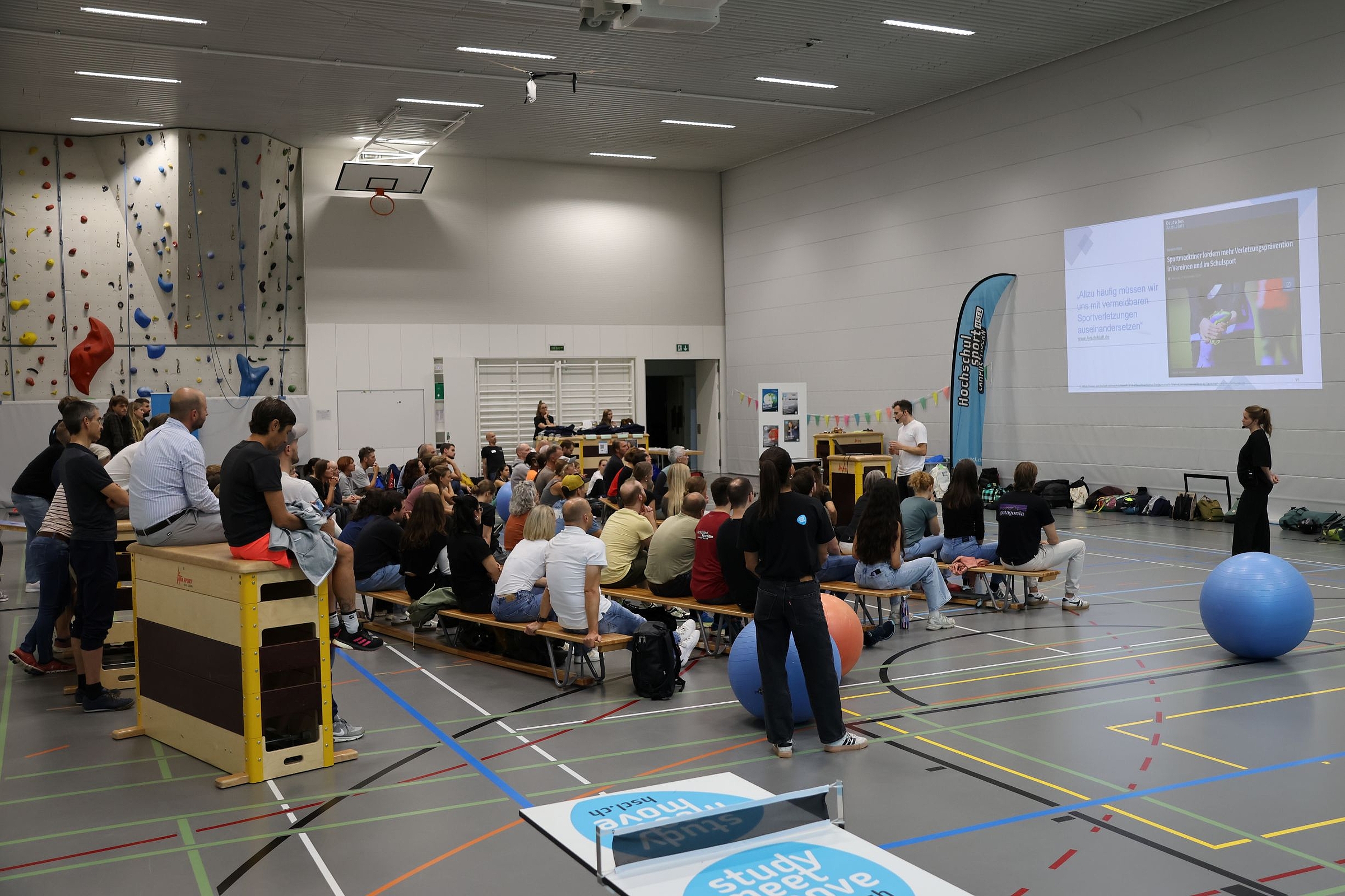 Der TL-Treff am 8. September 2025 wurde von 104 Trainingsleitenden des HSCL besucht. Neben dem Gastreferat von Jana Frangi und Samuel Schär zum Thema Sicher trainieren – Sportübergreifende Prävention im Uni-Sport präsentierte Patrick Udvardi (Leiter HSCL) Neuigkeiten und Infos für die Trainingsleitenden.