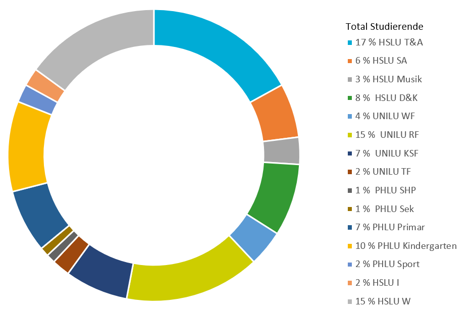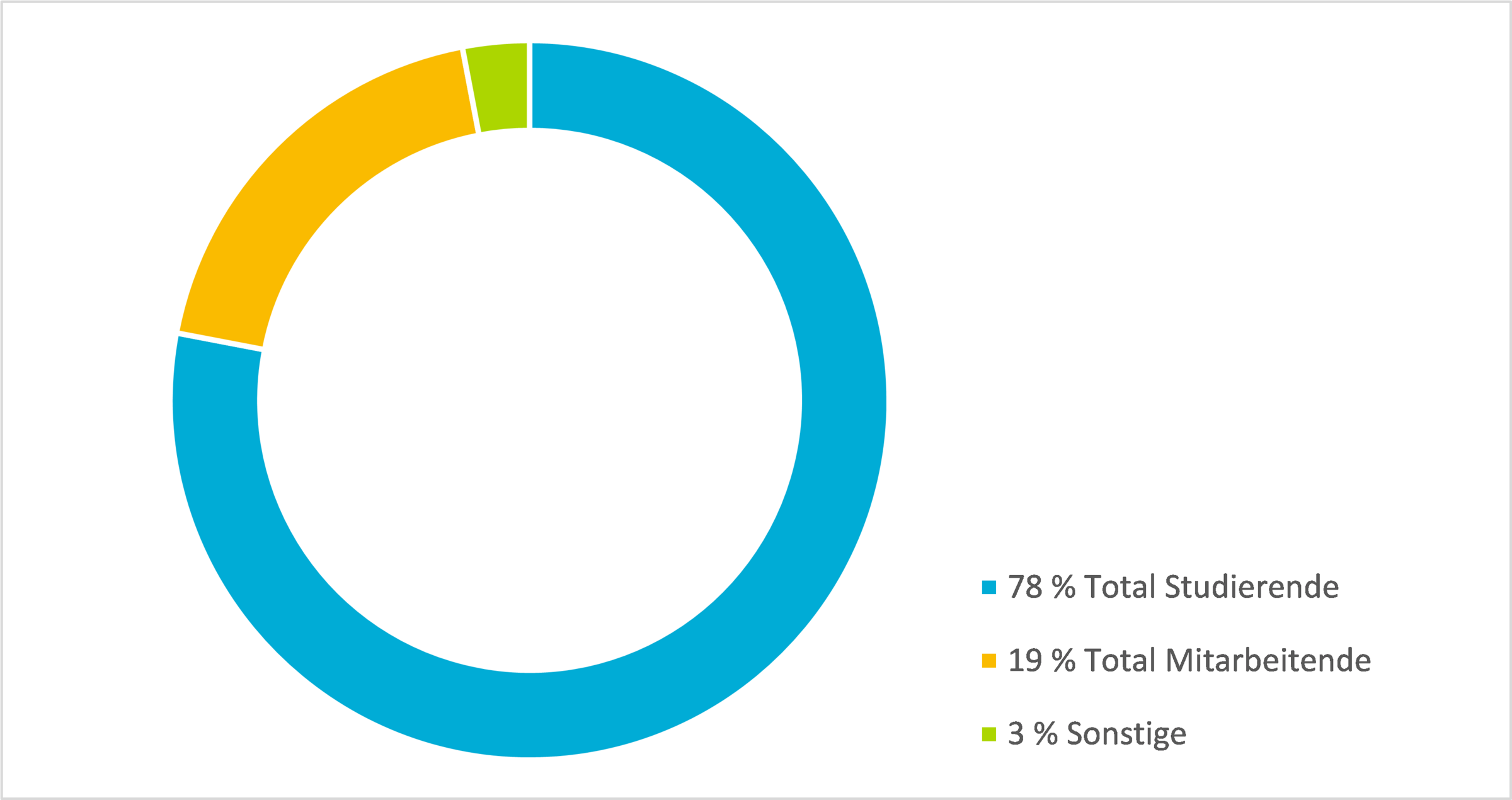 Aktive Nutzer und Nutzerinnen sind auch Studierende von anderen Schweizer Universitäten oder Fachhochschulen mit einem Anteil von 11 %. Die Mitarbeitenden der Luzerner Hochschulen generierten 9 % der Besuche.
