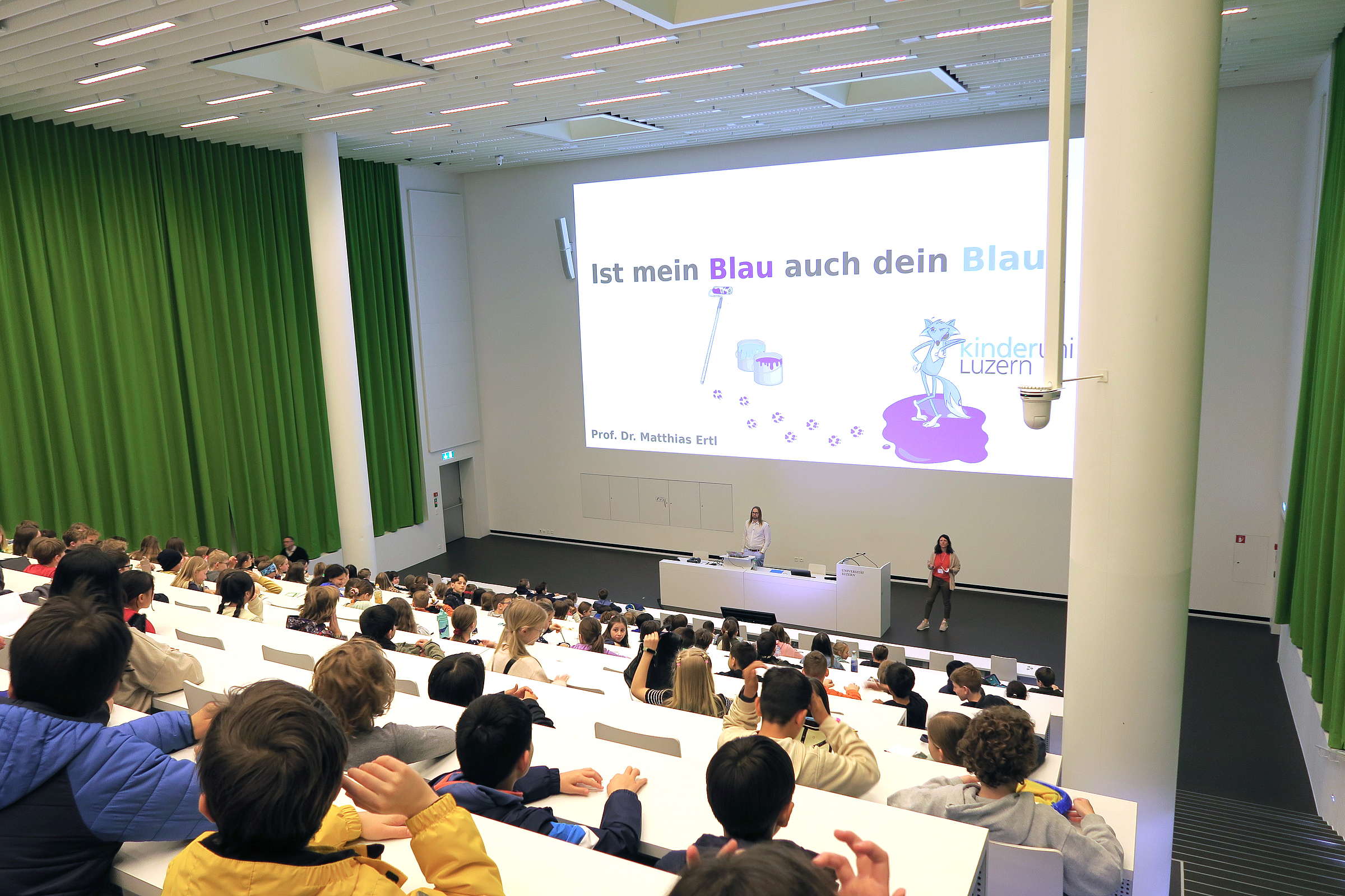 Die Kinderuni ist fast wie eine Universität für Erwachsene: Professoren und Professorinnen reden über Themen, zu denen sie viel wissen und sogar Bücher geschrieben haben. Ihr seid die Studentinnen und Studenten, kommt an die Uni, in den Hörsaal, hört zu und könnt auch Fragen stellen. Wir möchten euch die Türen öffnen zur Welt der Wissenschaft und euch Themen näher bringen, zu denen an der Uni Luzern geforscht wird.