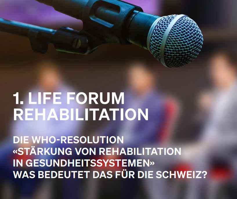 On May 27, 2023, WHO member states unanimously adopted a resolution to "Strengthen Rehabilitation in Health Systems." As part of the Lucerne Initiative for Functioning, Health and Wellbeing (LIFE), the first national LIFE Forum on Rehabilitation wass held on February 15, 2024. The event adressed the question of what the WHO resolution means for Switzerland and is aimed at an interdisciplinary audience from practice, research, education and politics. After two introductory keynotes, flash talks highlighted the current challenges in the Swiss rehabilitation landscape and the expectations of the resolution from the perspective of service providers, quality development and education. In a concluding panel discussion, health policy makers commented on the concrete steps that are indicated for the implementation of the resolution in Switzerland.