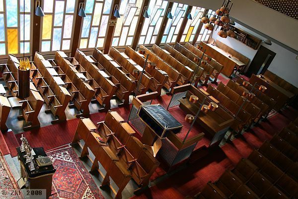 Eli Rosengarten, the current president of the Agudas Achim parish founded in 1927 says: «The community was fragmented, and we had no proper infrastructure as our central point. (…) Nor could the individual small prayer groups always make up the quorum of ten men necessary to conduct a service.» Rabbi Mordechai Jaakow Breisch, former spiritual leader of the community, therefore had the idea in the mid 40s to build a central community centre with a synagogue.