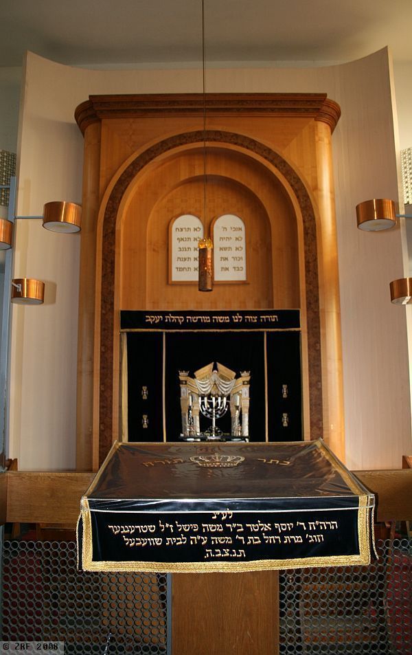 The parish commissioned Walter Sonanini with the construction of the synagogue. They set «no rules concerning the design and formal development of the synagogue», as Ron Epstein writes in his book «The Synagogues of Switzerland» (2008, p. 180), referring to the architect. As the study of the Torah is extremely important in Orthodox Judaism, a «Bet Midrash», with library and classrooms was built next to the prayer room. Sonanini also built a textile company in the building adjoining the synagogue.