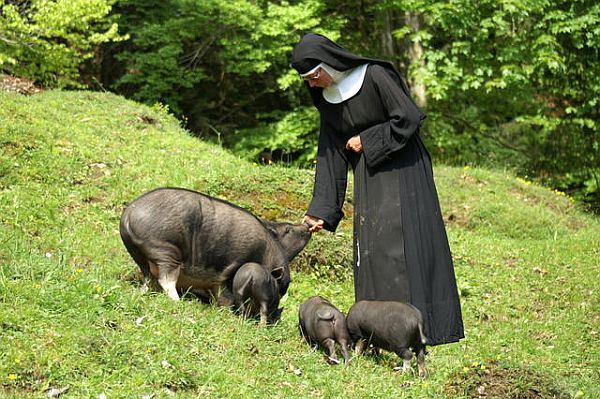 Another focus of the centre is the environment and animal protection. Below the former hotel building, the community runs a small mountain hut with an artificial pond, in which live chickens, pigs and goats, as well as a bull named Nandi, who became famous in the Swiss media for escaping slaughter.
