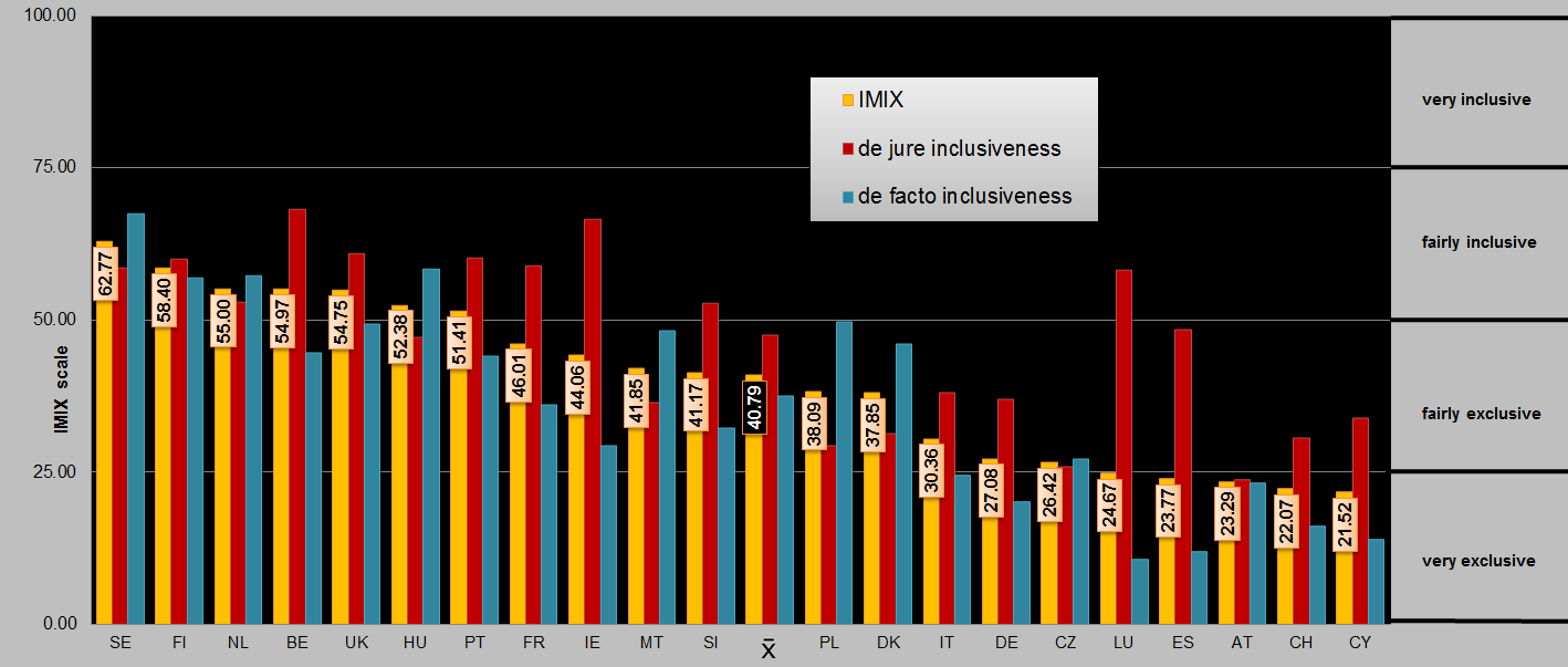 Blatter, Joachim; Schmid, Samuel D.; and Blättler, Andrea C. (2015). The Immigrant Inclusion Index (IMIX). A Tool for Assessing the Electoral Inclusiveness of Democracies with Respect to Immigrants.Working Paper No.08, 2nd edition, Working Paper Series 'Glocal Governance and Democracy', Department of Political Science, University of Lucerne.