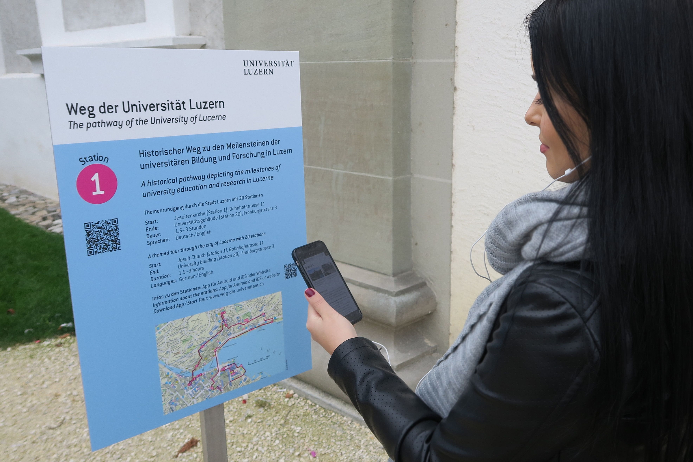 The themed tour through the city of Lucerne with 20 stations is accompanied by a smartphone app. The full texts in the audio can be read or listened to at the respective station.