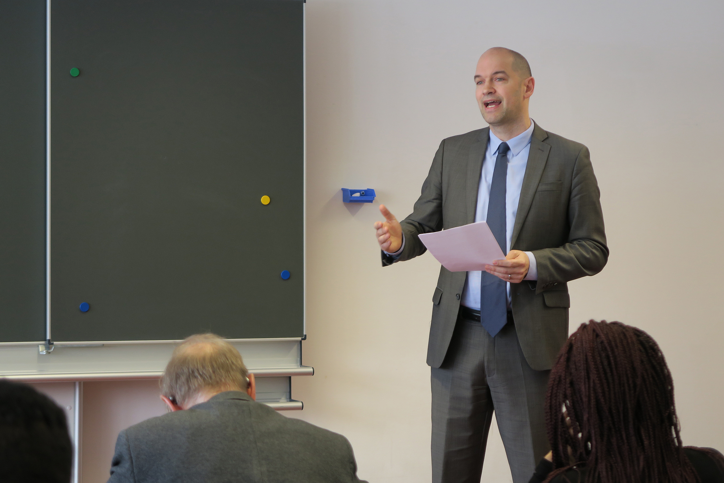 In den Einführungen gingen die Organisatorin und der Organisator dann auch auf die kritische Dimension einer Legitimation von Ungerechtigkeit durch Differenz ein. Während Christine Abbt anhand eines aktuellen Negativbeispiels der Essener Tafel aufzeigte, inwiefern nicht die Bedürftigkeit, sondern die Nationalität eines Menschen ausschlaggebend für die Hilfeleistung ist, betonte Peter G. Kirchschläger aus einer ethischen Perspektive, dass die Menschenrechte das Individuum in einer Beziehung zu allen anderen Menschen verstehen. Obwohl die Menschenrechte zwar unabhängig einer Gruppenzugehörigkeit jedem Menschen zustehen, könne man nicht von Individualismus sprechen. Denn die Menschenrechte müssten auch mit allen geteilt werden.