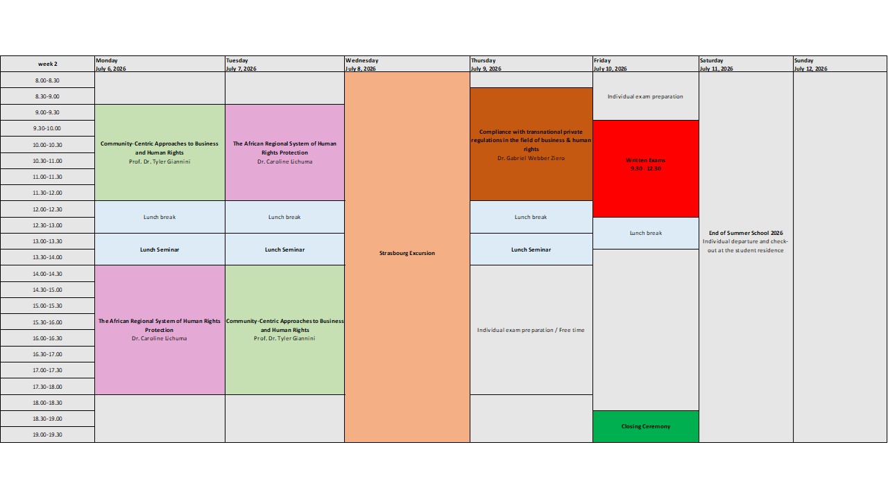 During the Summer School, participants are given the chance to learn and consolidate the theoretical and trial skills necessary to prepare for a career in human rights. Participants will not only learn about the field of human rights, but also about how to incorporate that knowledge into the actual work of defending human rights. Special focus will be placed on advocacy skills such as case assessment and oral argumentation. All courses, lunch seminars and the participation will be conducted in English.