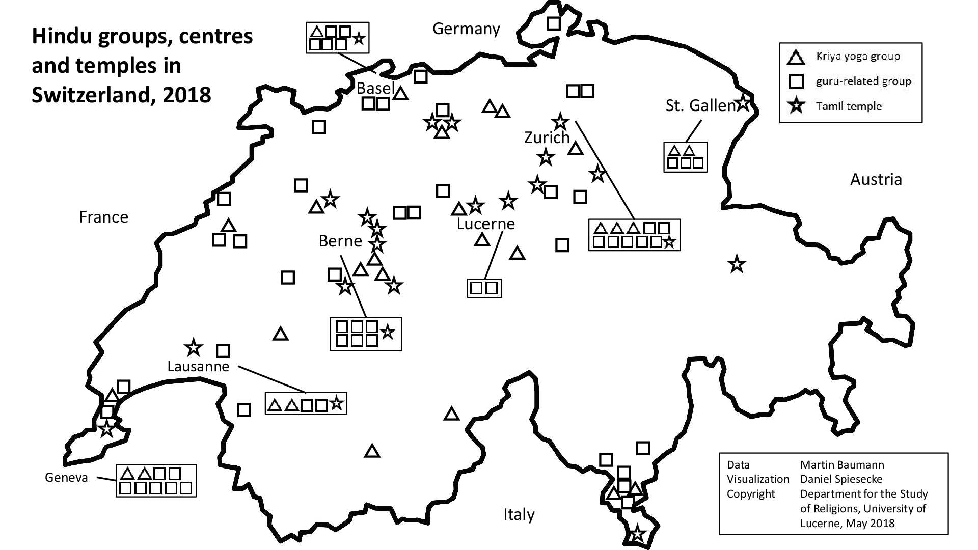 Hindu-Gruppen und -Zentren in der Schweiz (2018)