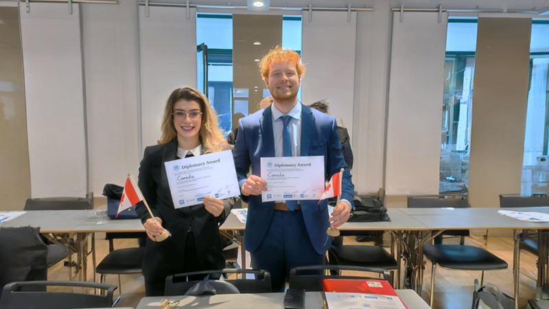 Doch ganz vorüber ist es noch nicht. Der Chair bedankt sich in einer kurzen Rede für das Engagement aller Delegationen. Dann werden die Diplomacy Awards angekündigt – die höchste Auszeichnung, die bei einer MUN-Konferenz vergeben wird. Für einen Moment rauscht es in meinen Ohren. Der Schlafmangel fordert seinen Tribut. «Canada.» Das Wort reisst mich zurück. Wir haben gewonnen.