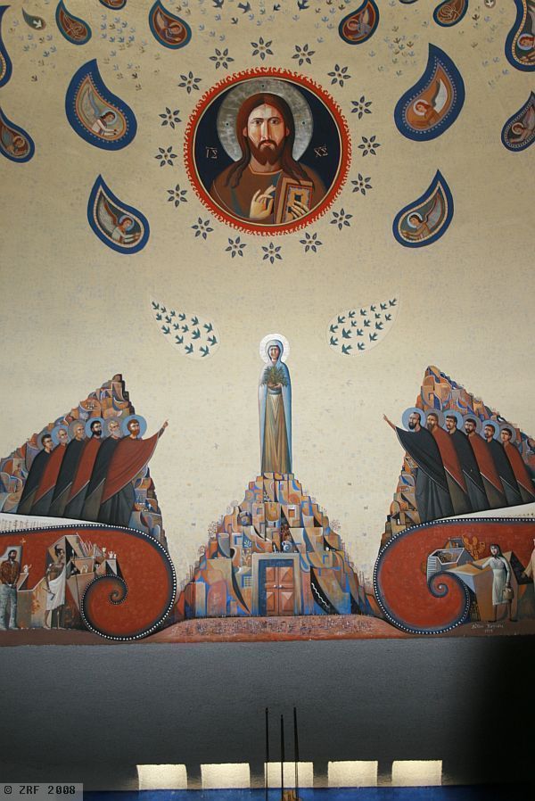 Ins Auge fällt rasch ein niedriger Turm mit halbrundem Kupferdach, aus dem ein kleines Kreuz aufragt − der augenscheinlichste Hinweis dafür, dass wir vor Saint-Paul stehen, der Patriarchalkirche des «Ökumenischen Patriarchates von Konstantinopel». Die moderne Kirche mit Halbkuppel ist «ein Versuch, dem Orthodoxen Kirchenbau einen Stoss Richtung Erneuerung zu geben», erläutert Georges Lavas in einem Fachartikel (Nachweis siehe Kasten rechts). So soll die fehlende Hälfte zum Ausdruck bringen, dass heutzutage ein «abgeschlossenes» Universum (symbolisiert durch eine ganze Kuppel) nicht mehr glaubhaft erscheint.