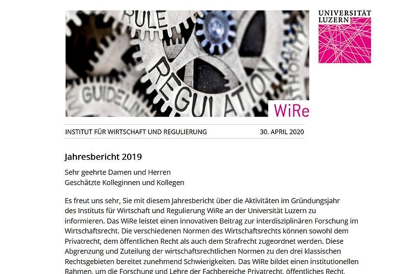 Erster Jahresbericht des Instituts für Wirtschaft und Regulierung WiRe