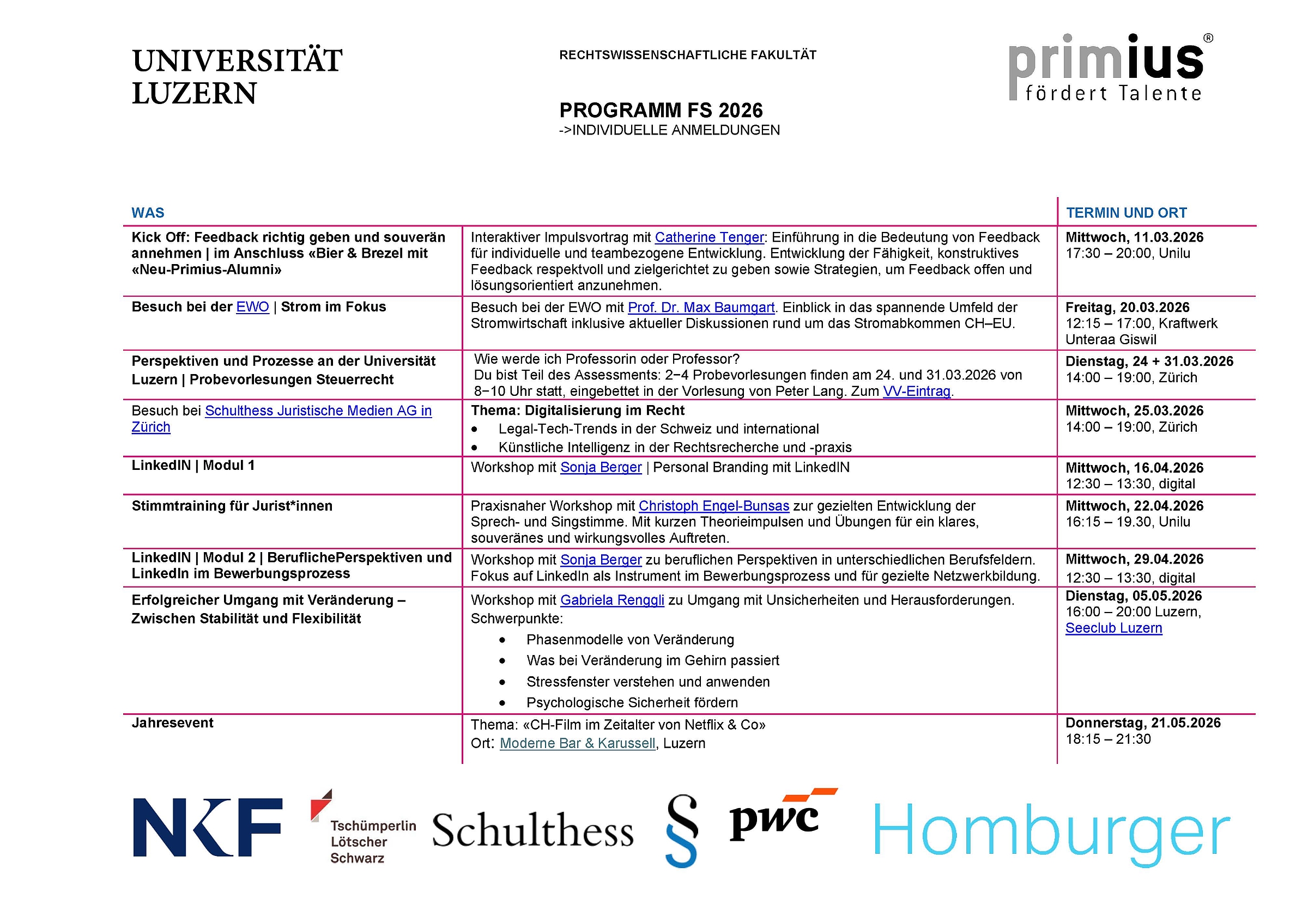 • Bachelor: mind. im 3. Semester; Assessment abgeschlossen; Notendurchschnitt mind. 5.2