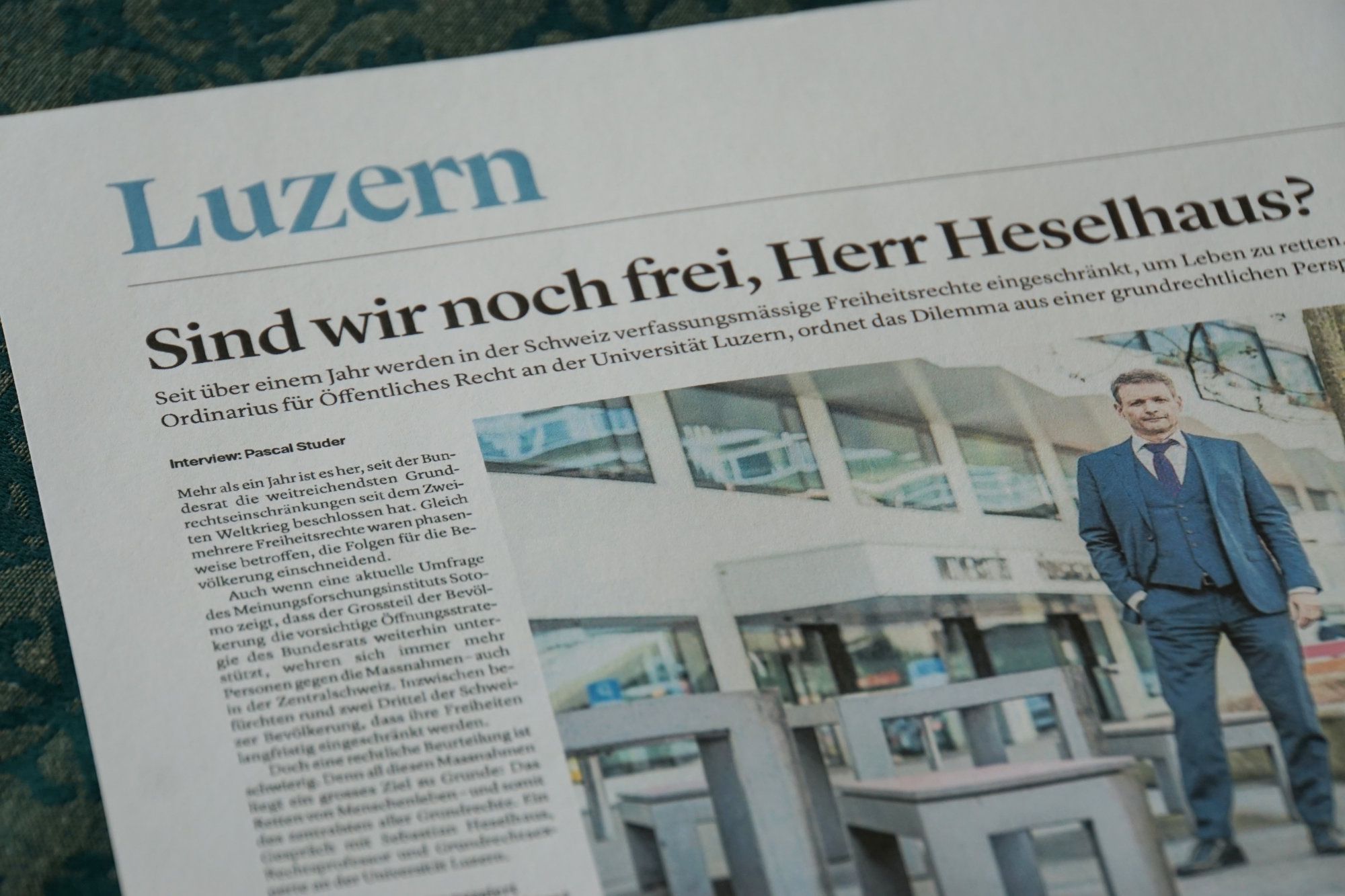 Prof. Dr. Sebastian Heselhaus äussert sich zum Dilemma, dass seit über einem Jahr in der Schweiz die verfassungsmässigen Freiheitsrechte eingeschränkt werden, um Leben zu retten. Interview in der Luzerner Zeitung vom 7. April 2021