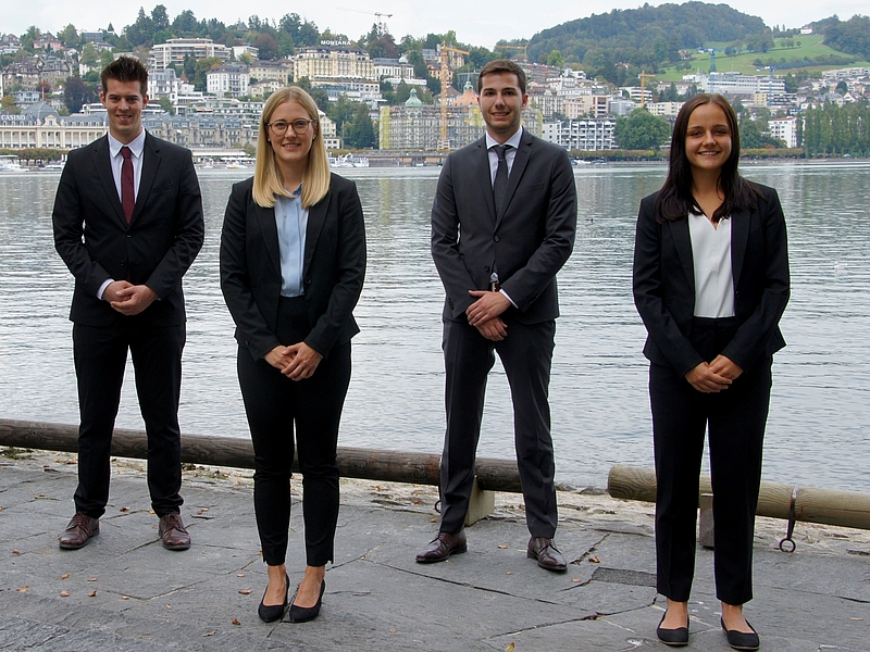 Die Universität Luzern wurde am diesjährigen Willem C. Vis Moot von einem vierköpfigen Team vertreten, bestehend aus Alina Krebs, Annina Seydel, Dario Schönbächler und Raphael Schmid. Im vergangenen Herbst wurde der fiktive Schiedsfall aufgeschaltet und damit die schriftliche Phase des Moots eröffnet. Hierbei verfassten die «Mooties» eine Klageschrift und eine Klageantwort. In der darauffolgenden Phase verteidigte das Team die Standpunkte der jeweiligen Parteien in mündlichen Plädoyers. Die gesamte Vorbereitung als auch der Wettbewerb erfolgten in englischer Sprache. Der Einsatz des Teams machte sich bezahlt: Unter knapp 400 teilnehmenden Teams wurde die Luzerner Klageschrift mit einer «Honorable Mention» prämiert und gehört damit zu den besten fünf Prozent.