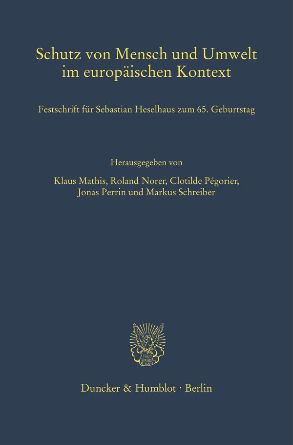 - Mathis, Klaus/Norer, Roland/Pégorier, Clotilde/Perrin, Jonas/Schreiber, Markus. (Hrsg.), Schutz von Mensch und Umwelt im europäischen Kontext, Festschrift für Sebastian Heselhaus zum 65. Geburtstag, Schriften zum Öffentlichen Recht, Bd. 1584, Berlin 2025