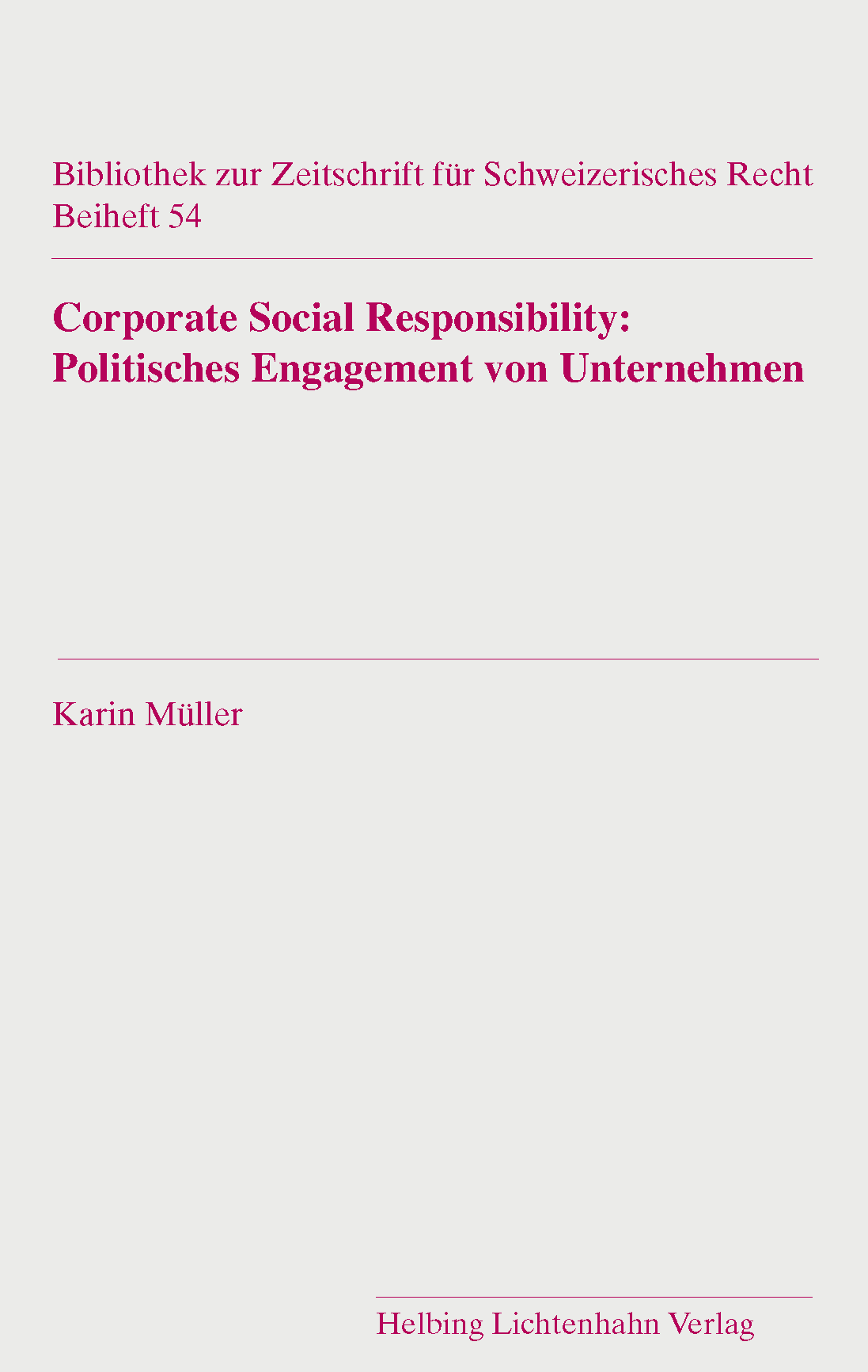 - Müller Karin, Corporate Social Responsibility: Politisches Engagement von Unternehmen, ZSR-Beiheft, Bd. 54, Basel 2017, https://doi.org/10.5281/zenodo.1401745