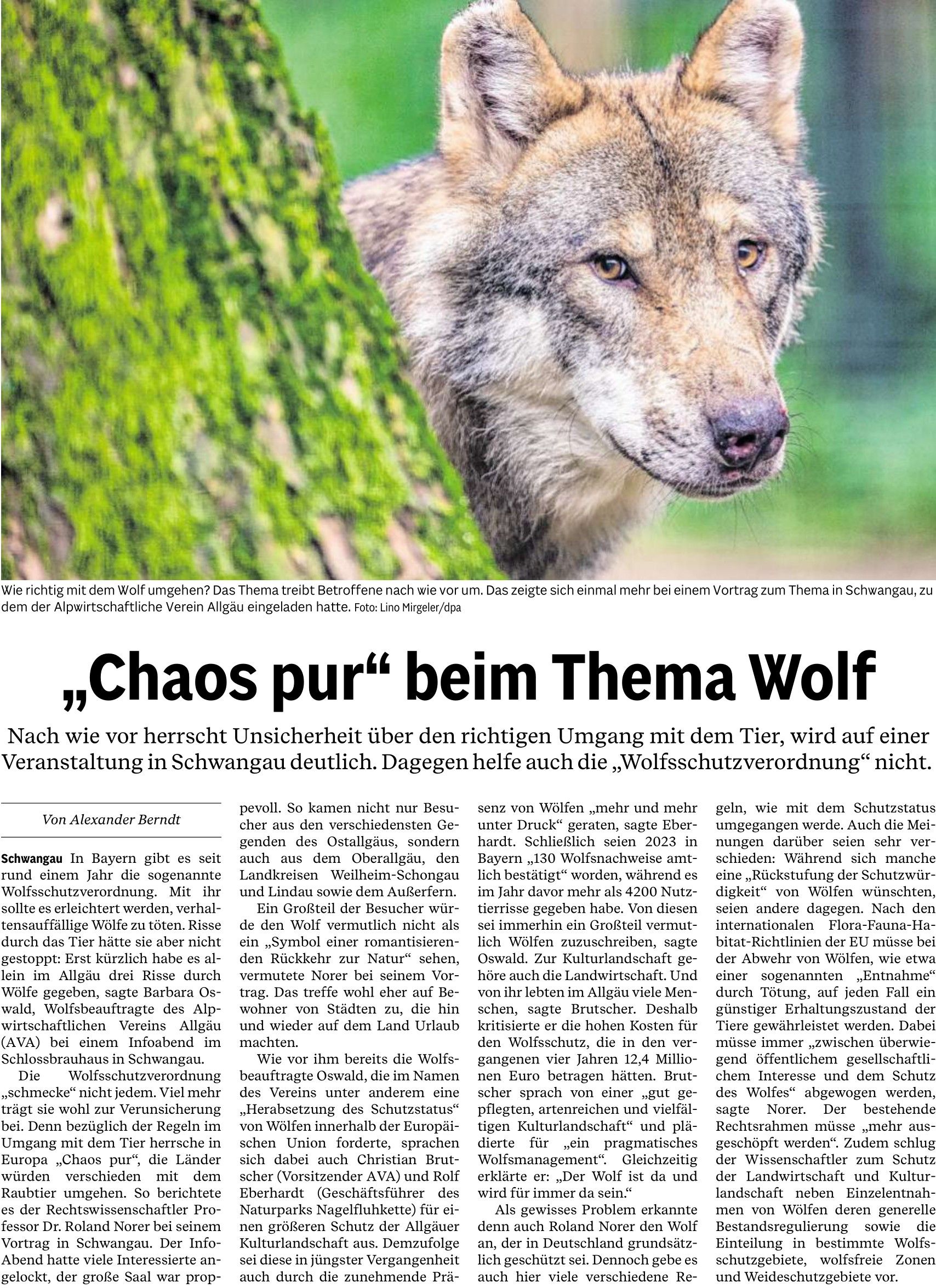 Die künftige Ausgestaltung des Regelungsrahmens für Wolfsschutz und Wolfsmanagement steht derzeit vielfach zur Disposition, in der EU, in einigen Mitgliedstaaten und in der Schweiz. Anlässlich des Erscheinens des Buches «Wolfsmanagement im Alpenraum. Rechtsfragen zwischen Artenschutz und Weidehaltung» von Prof. Roland Norer (Universität Luzern) wird mit mehreren Veranstaltungen an ausgewählten Orten des deutschsprachigen Alpenbogens ein Diskussionsprozess mit Fokus auf die alpine Weidewirtschaft auf Ebene der Betroffenen, der Politik und der Wissenschaft ermöglicht. Diese Alpenreise führt sowohl zu den Hotspots (Wallis, Graubünden, Salzburg, Tirol) als auch in die politischen Zentren (Bern, Wien, München) und Gebiete, in denen eine Rückkehr der Wölfe erst begonnen hat (Uri, Südtirol, Bayern). Im Austausch mit Wildtierbiologen, Alpenhistorikern, Alpbäuerinnen und -bauern, Förstern, Wildhütern, Naturschützerinnen und -schützern, Jägerinnen, Funktionären, Politikerinnen, Verwaltungsmitarbeitenden und Medienschaffenden wird das neue Buch vorgestellt, welches mögliche Handlungsoptionen zur Debatte stellt.