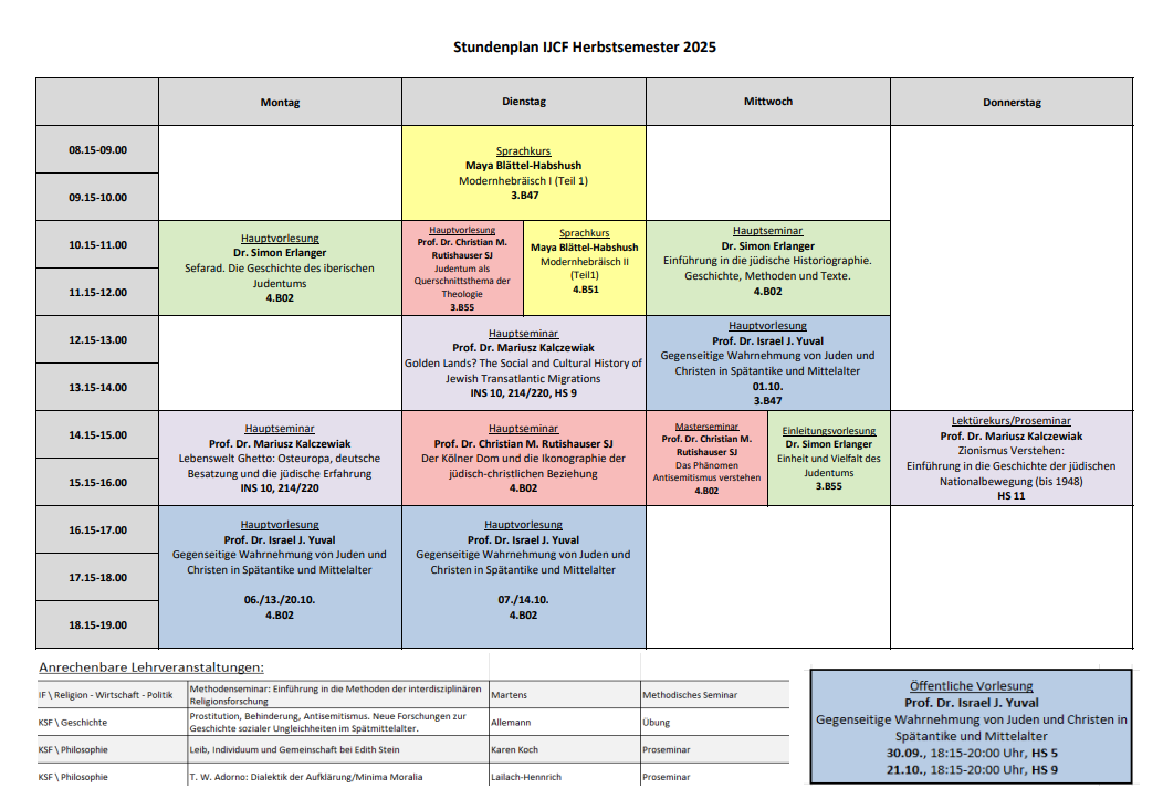 Stundenplan Judaistik-Jüdische Studien HS 2025