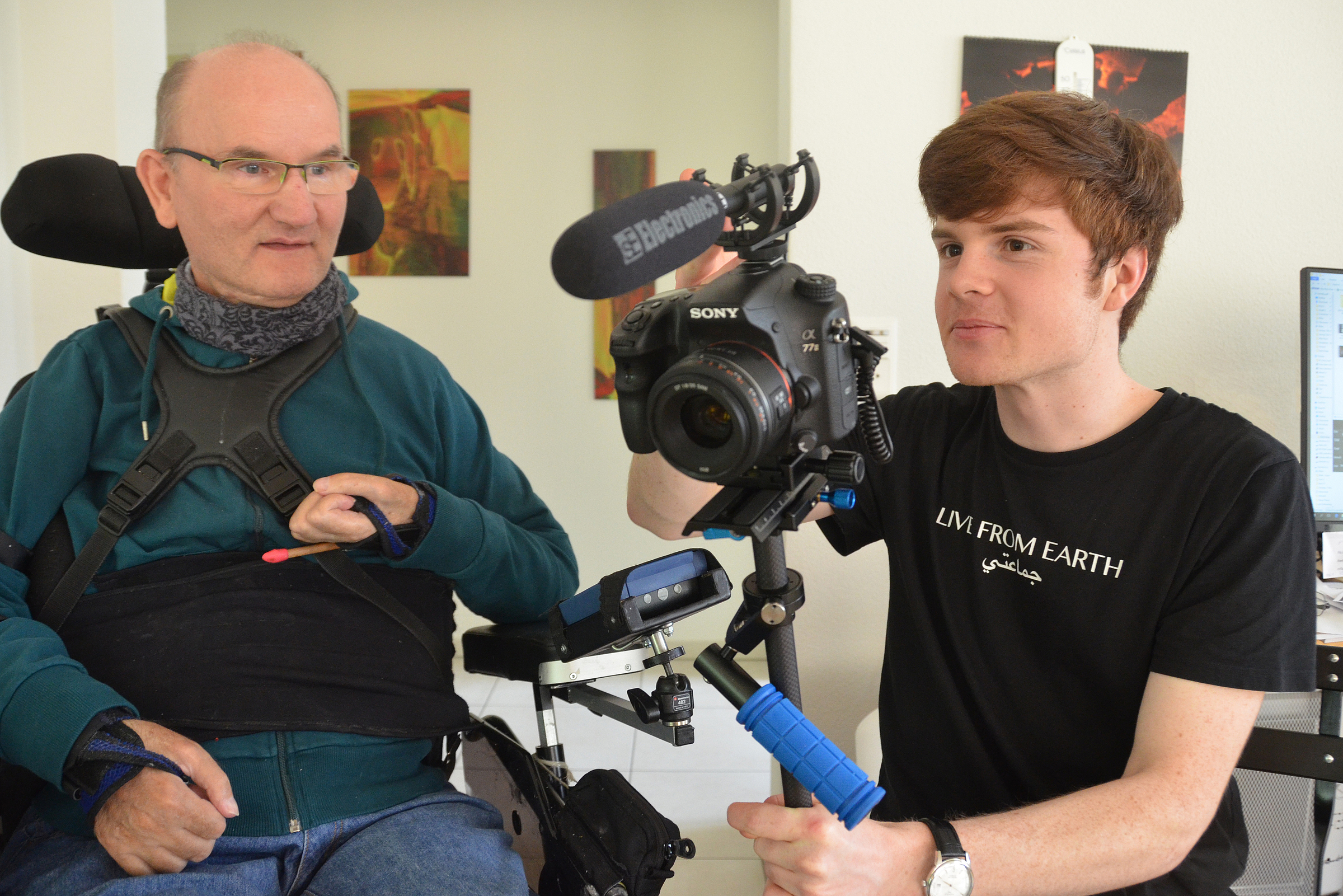 "Ich träumte, ich kann fliegen": So lautet der Titel des 20-minütigen Films (siehe Link unten), den Jan Murer im Rahmen seiner Maturaarbeit konzipiert und gedreht hat. In diesem stellt der 18-Jährige aus Root den Tetraplegiker Martin Doppmann vor. Dieser hatte vor rund zehn Jahren einen Kletterunfall und führt – unterstützt von seinem Freundeskreis – ein recht selbstständiges Leben in seiner Wohnung in Malters. Allen Widrigkeiten zum Trotz hat der 54-Jährige, der eine eigene Website unterhält, seinen Humor nicht verloren; so ist vor Kurzem sein zweites, wiederum komplett selbst gestaltetes Buch "Alles Käse. Lyrisch, schräg, ironisch und sinnfrei. Texte und Bilder" erschienen.