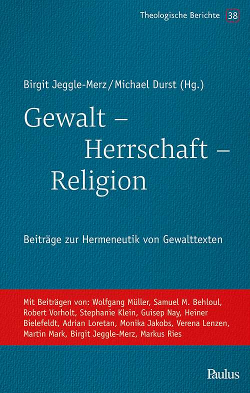 Birgit Jeggle-Merz / Michael Durst (Hrsg.), Gewalt – Herrschaft – Religion. Beiträge zur Hermeneutik von Gewalttexten (= Theologische Berichte 38) (Einsiedeln 2018) 248 S., ISBN 978-3-7228-0912-0.
