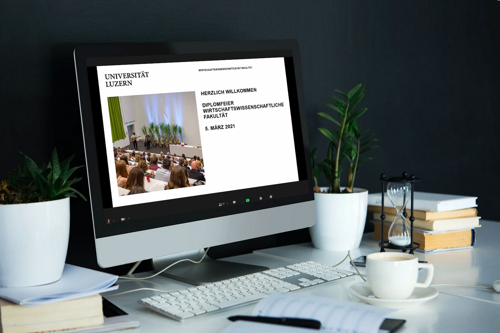 In Anwesenheit von Dozierenden und Verantwortlichen der Wirtschaftswissenschaften wurden den Absolventinnen und Absolventen am 5. März ihre Diplome virtuell verliehen. Die Feier fand aufgrund der Corona-Pandemie im Rahmen einer «Zoom»-Videokonferenz statt.