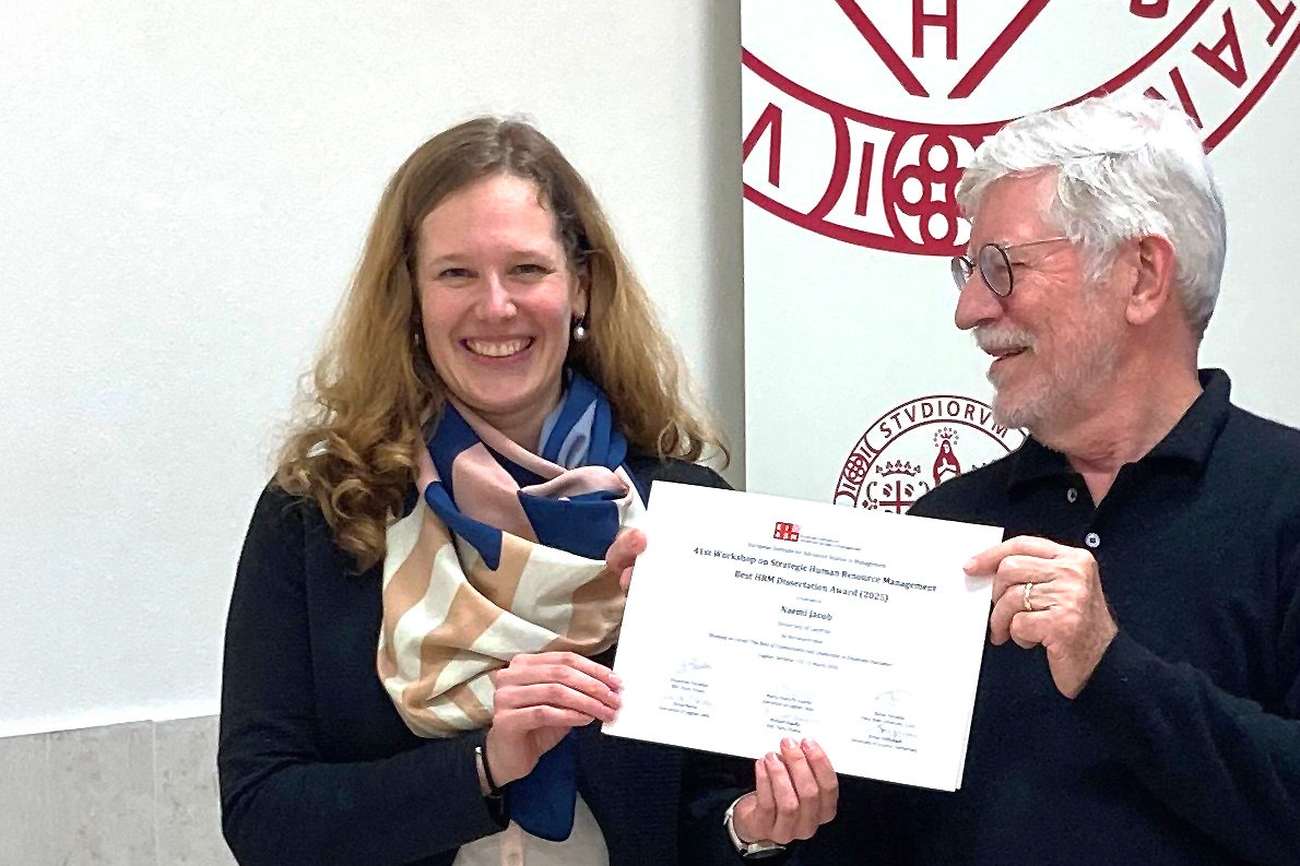 Naemi Jacob wurde mit dem Best HRM Dissertation Award 2025 ausgezeichnet. Dies im Rahmen des 41st Workshop on Strategic Human Resource Management des European Institute for Advanced Studies in Management (EIASM).