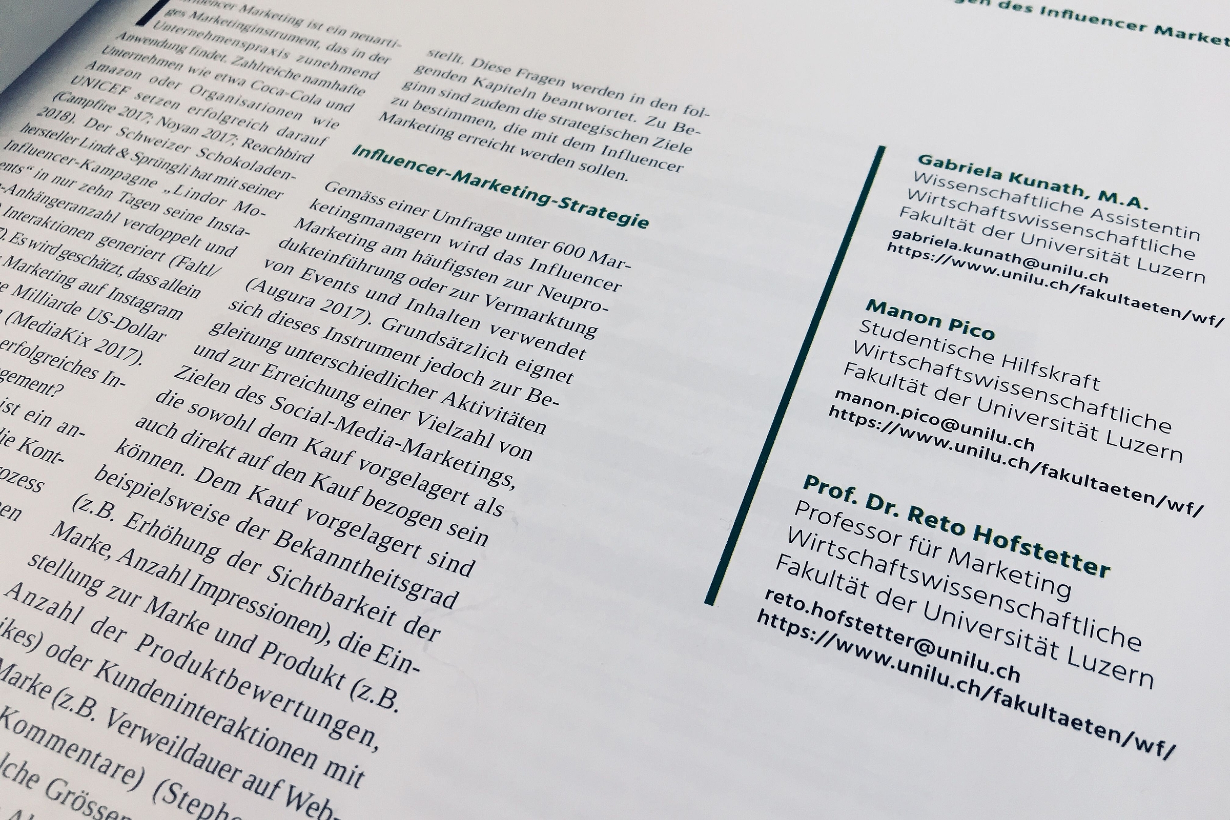 Manon Pico begann im Herbst 2016 ihr BA-Wirtschaftsstudium an der Universität Luzern. Seit dem 1. Oktober 2017 arbeitet sie als studentische Mitarbeiterin am Lehrstuhl von Prof. Dr. Reto Hofstetter. Gemeinsam mit ihm und einer Doktorandin hat sie den Artikel Erfolgreiches Influencer-Marketing-Management in der Marketingzeitschrift "Marketing Review St. Gallen" veröffentlicht. Manon Pico freut sich über diese Möglichkeit und sagt im Interview, was es für ein Gefühl ist und was sie gelernt hat.