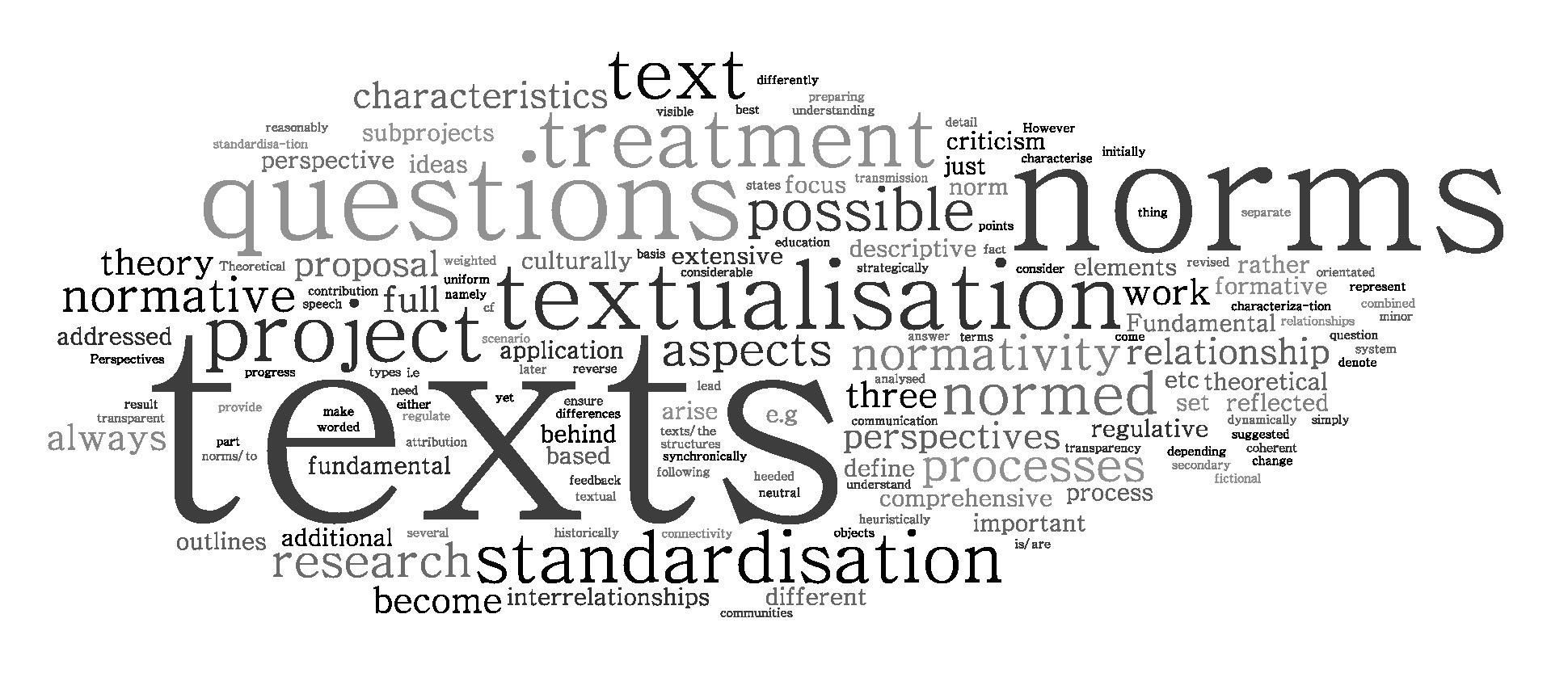 Das inter- und transdisziplinäre Forschungsprogramm von TeNOR umfasst in seiner Fragestellung alle Disziplinen, die sich mit der Thematik der Korrelation von Text und Normativität aus unterschiedlichen Perspektiven befassen. Das Ziel ist es, ein umfassendes Verständnis der Entstehung der normativen Geltung von Texten einerseits und der unterschiedlichen Prozessen der Vertextung anerkannter Normen in Geschichte und Gegenwart andererseits zu erreichen. Dies lässt sich anhand dreier Kernfragen aufschlüsseln: Warum werden Normen textualisiert? Wie werden Texte normativiert? Wie bildet sich der regulative, normierte Umgang mit Texten heraus? Diese Fragen sind für alle Disziplinen der Geistes-, Sozial- und Kulturwissenschaften, die in einem weiten Sinne Textwissenschaften sind, in ähnlicher Weise elementar: Es soll die Frage nach der ‚normativen Kraft des Textlichen’ geklärt werden. Die Resultate der bisherigen Forschung des universitären Forschungsschwerpunkt FSP TeNOR und die dabei erarbeiteten Kontakte zu kooperierenden Forschungseinrichtungen sollen in das Graduiertenkolleg TeNOR einfliessen.