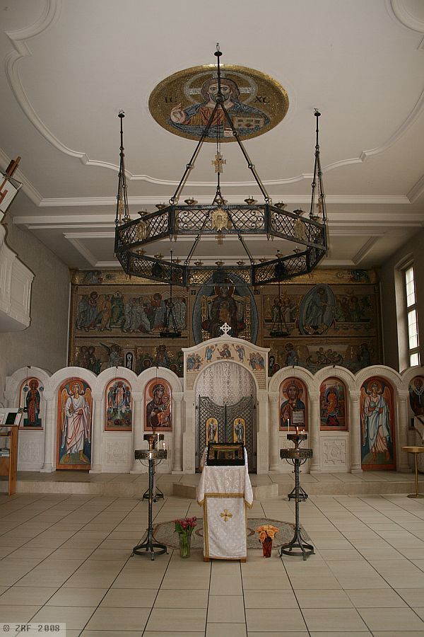 Le 15 décembre 2002 on était si avancé que le Metropolite Kyrill de Smolensk et Kaliningrad, membre du Saint synode et chef du service extérieur du patriarcat de Moscou, célébrait la «grande inauguration». Juste six semaines auparavant, le propriétaire du bâtiment voisin avait fait opposition contre l'installation de deux cloches, démarche que le pasteur Batov comprend: «Ils avaient peur de ne pas pouvoir faire la grasse matinée le dimanche. C'est normal car les voisins sont très proches de notre église. Nous avons compris leur situation et promis que nous ferions peu sonner les cloches.» L'opposition fut finalement rejetée en mars 2003. Ainsi, les cloches de la Narzissenstrasse ne sonnent que le samedi à 17 heures et le dimanche à 10 heures et c'est seulement à Pâques que l'on entend les cloches à minuit.
