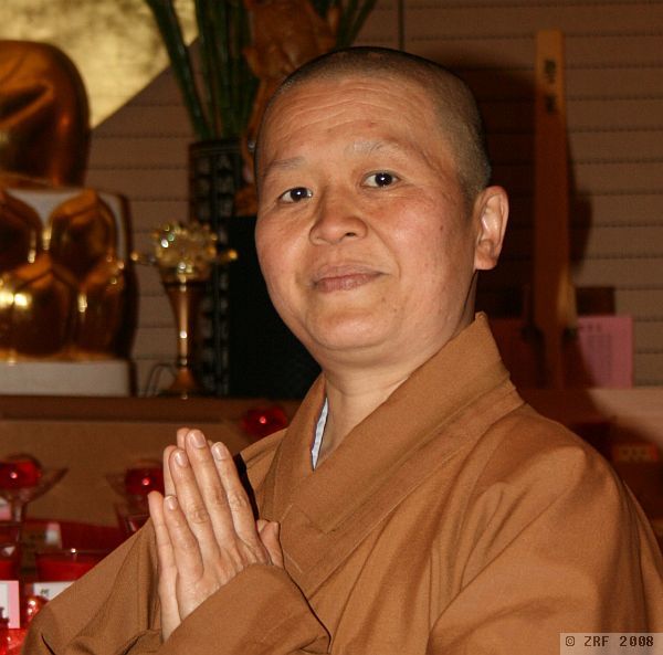 C'est en avril 2008 que la vénérable nonne Chue Yann vint à Genève. Elle dirige depuis lors le centre de conférence, une succursale du cloître principal de Fo Guang Shan au Sud de Taiwan. Chu Yann est née en Malaisie et vit depuis 1992 en Europe. Comme les clercs de Fo Guang Shan doivent se déplacer régulièrement, elle a vécu à Londres, à Manchester, à Stockholm et encore une fois à Londres avant de se fixer à Genève. Comment se fait-il que cette Malaisienne sympathique soit partie un jour au Sud de Taiwan pour devenir nonne ? «Alors que j'étais à l'école secondaire, j'ai rencontré notre maître, Hsing Yun. Je partis alors pour le Fo Guang Shan à Taiwan afin de devenir nonne et étudiai là-bas au séminaire bouddhiste. Le maître Hsing Yun est très connu en Malaisie.»