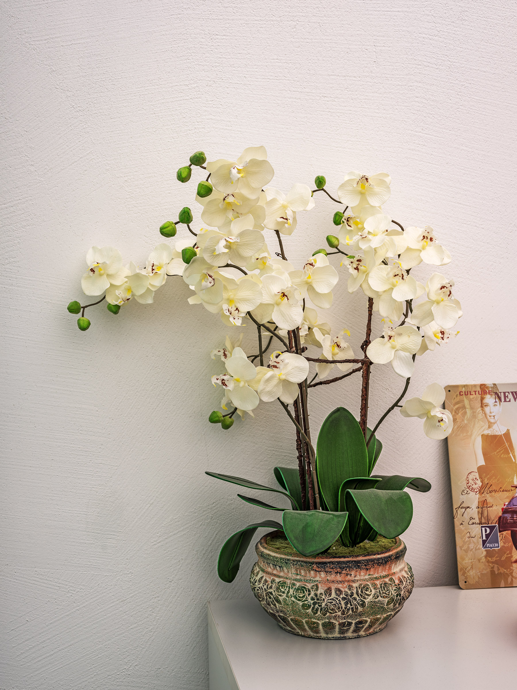 «Diese Blumen sind nicht echt – leider neige ich dazu, Zimmerpflanzen zu ertränken. Aber im Garten beweise ich durchaus einen grünen Daumen, der Nüsslisalat kommt gut!»