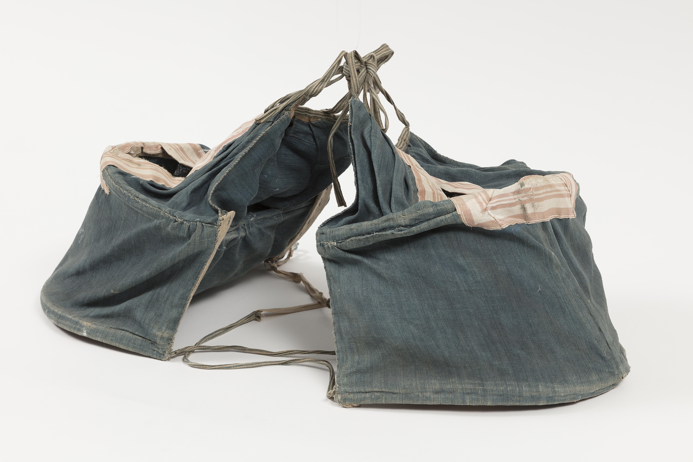 Das Hüftpolster, das heute im Museum Luzern ausgestellt ist, stammt aus der zweiten Hälfte des 18. Jahrhunderts und gehörte zur privaten Textilsammlung der Familie Meyer-am Rhyn, einer bedeutenden Sammlerfamilie der Region. Eine kleine Metallplakette mit der Abkürzung «MaRhy», die am Hüftpolster angebracht ist, verweist noch heute auf diese Herkunft; 1998 wurde das Stück restauriert. Seine Materialität erzählt ebenfalls Geschichte: Das kräftige Blau der Leinen deutet darauf hin, dass selbst Unterkleidung farblich auf die übrige Garderobe abgestimmt sein konnte. Konstruktion und Trageweise machen deutlich, wie präzise an der Silhouette gearbeitet wurde: Bänder fixierten das Polster am Bauch und an den Oberschenkeln, darüber lagen mehrere Schichten Stoff in Form weiter Röcke. Sichtbar war es nicht, wohl aber seine Wirkung im Umriss.
