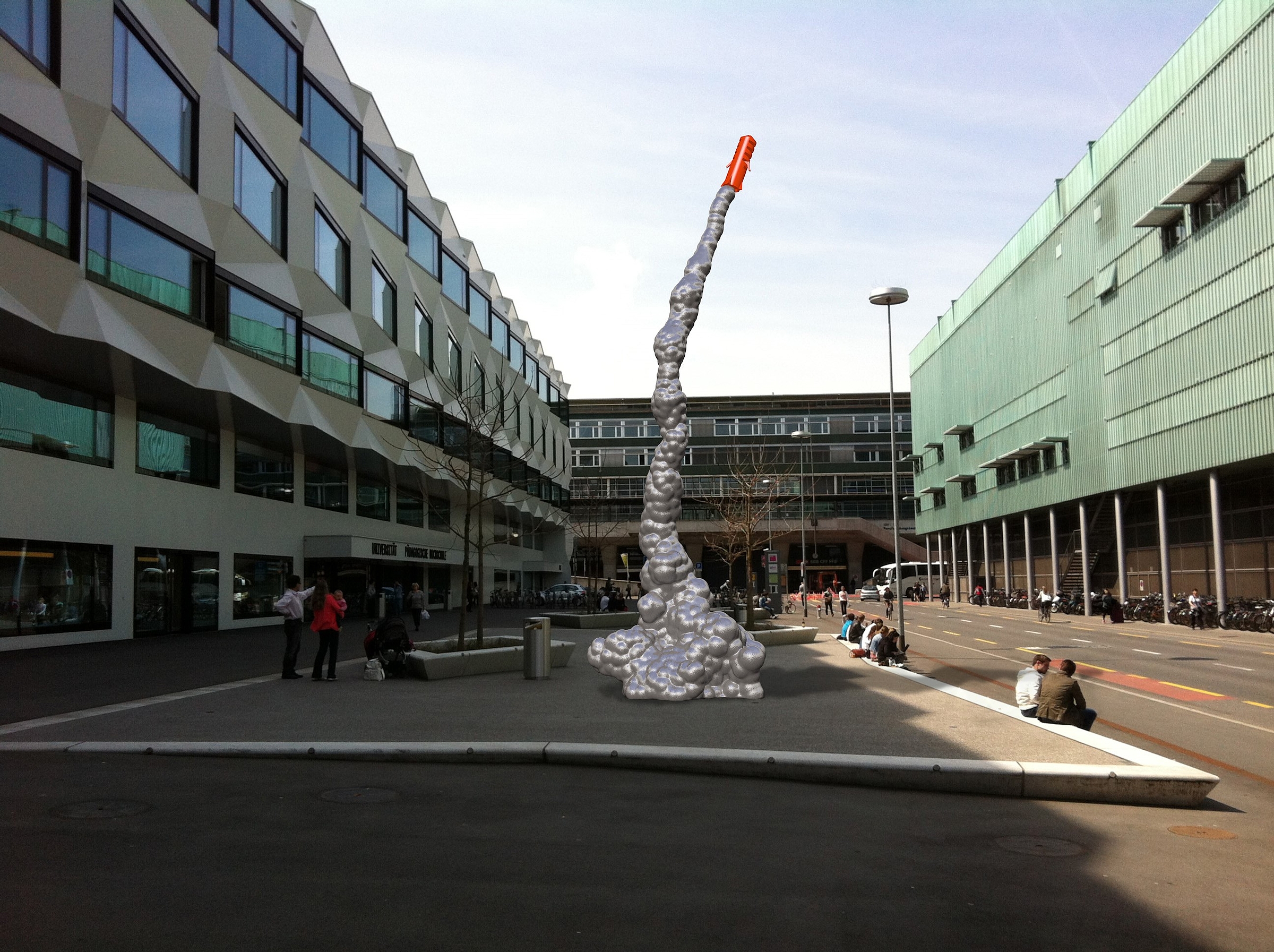 Allerdings kam es letztlich nicht dazu – was bleibt, ist eine Visualisierung. Wie eine Nachfrage bei Max Grüter ergab, existiert von der Skulptur mittlerweile nur noch ein Reststück mit Rauch und Dübel. Dieses befindet sich derzeit als Leihgabe in der Kunstgalerie «Salon Erika» – mitten in der Fankurve des FC Winterthur. Der Künstler wäre nach wie vor sehr offen dafür, wenn der «Bubentraum» im öffentlichen Raum installiert werden könnte. Auch wenn nun halt keine Rakete vor der Uni: Seit 2013 hat eine beträchtliche Entwicklung stattgefunden. So umfasst die Universität drei weitere demokratisch legitimierte Fakultäten, und die Studierendenzahl ist von 2400 auf über 3800 gestiegen.