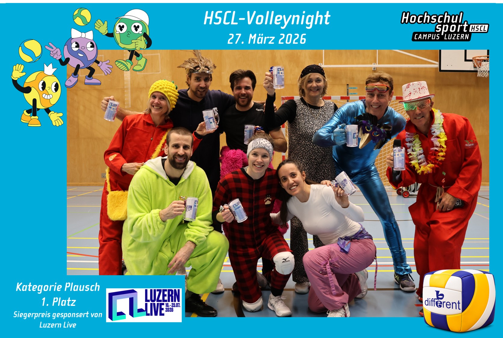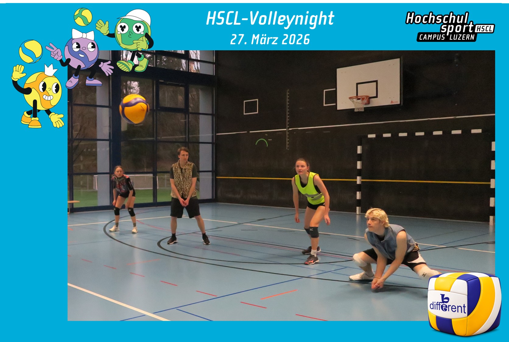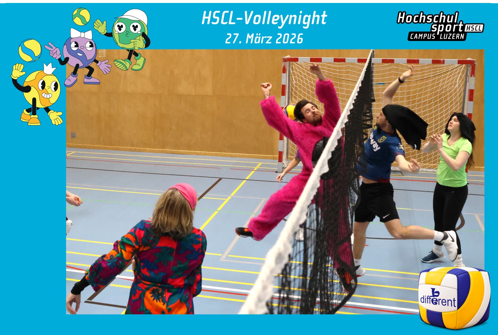 Die Volleynight fand zum Motto "Be Different" statt. Die verkleideten Teams spielten ab 18 Uhr in den Sporthallen der Kantonsschule Alpenquai. Die Finalspiele fanden kurz nach Mitternacht statt. Sieger in der Gruppe Amateure wurde das Team Hit and Run. In der Kategorie Plausch gewann das HSCL-Dream-Team. Der Hauptpreis ging an das Team De Nörfscht. Nebst der Siegerpreise gab es weitere Highlights wie Livemusik mit Brian Paul und einer Tanzshow mit Trainingsleitenden vom HSCL Rubina, Giorgia, Michelle, Jil, Amelie und Svenja. Abgerundet wurde der Event mit einer Afterparty im ROK!