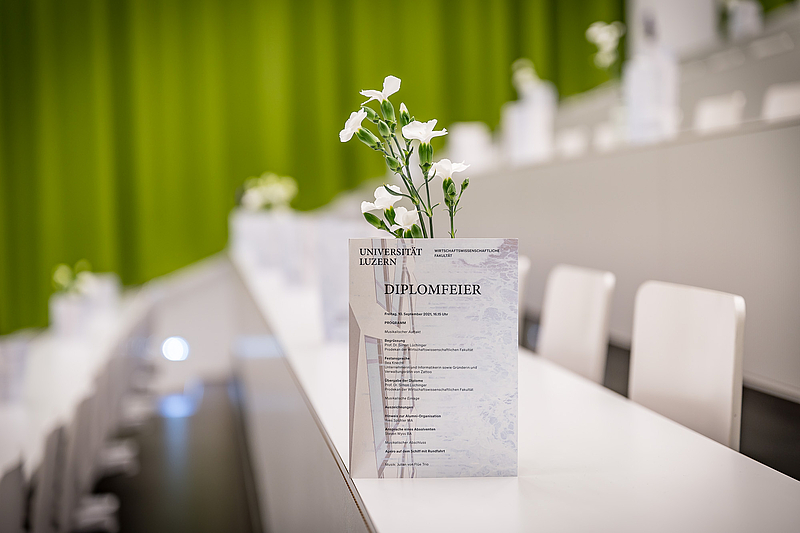 Die Diplomfeier findet am Freitag 9. September im Hörsaal 1 der Universität Luzern statt. Die Festansprache hält Judith Bellaiche, Nationalrätin und Geschäftsführerin des Wirtschaftsverbands Swico.