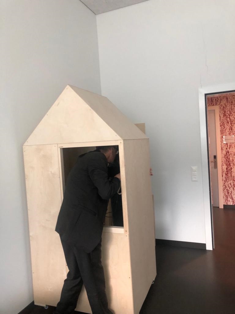 «Was ist da?» wird gefragt, wenn man am Büro von Prof. Preidel vorbei läuft und durch die offene Bürotüre ein eckiges, aus Holz zusammengezimmertes Gebilde sieht.
