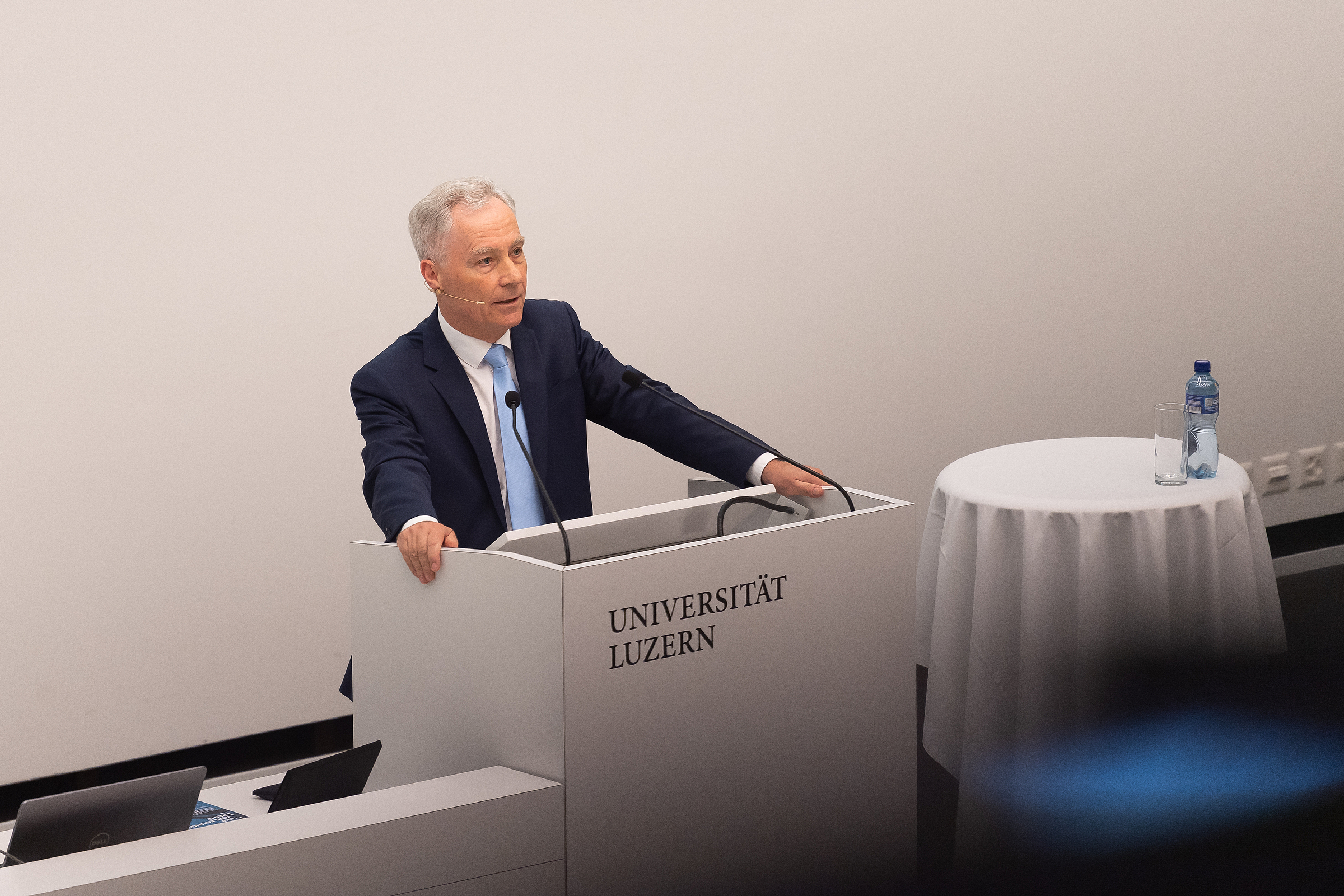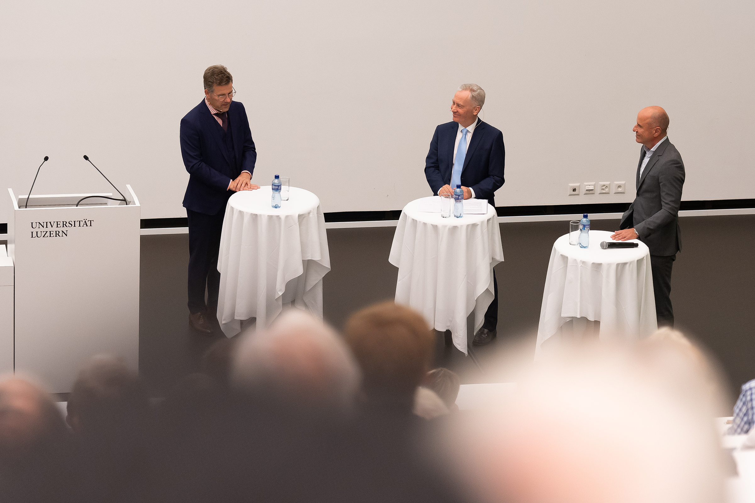Den Abschluss der von Luzerner Kantonalbank (LUKB) und Universitätsstiftung unterstützten Veranstaltung bildete eine von Rektor Prof. Dr. Bruno Staffelbach moderiertes Podiumsgespräch mit LUKB-CEO Daniel Salzmann.