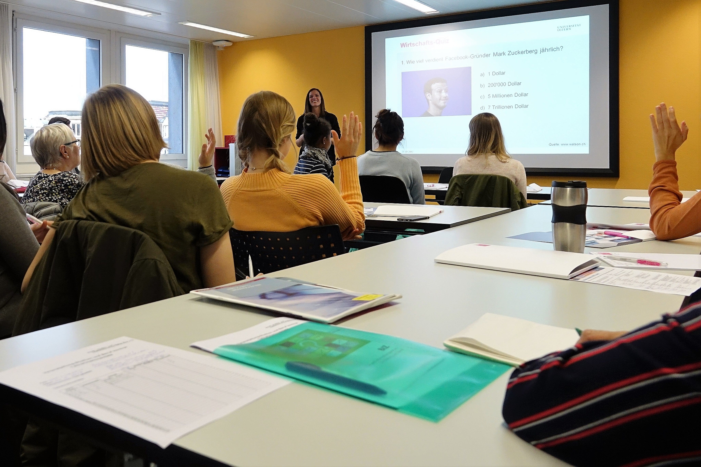 Die Studienberaterinnen der Wirtschafts- und Rechtswissenschaftlichen Fakultäten der Universität Luzern präsentierten den Schülerinnen und Schülern die Studiengänge Wirtschaftswissenschaften und Rechtswissenschaft. Sie erklärten den Studienaufbau und zeigten auf, wie es nach dem Studium weitergehen kann und welche Berufsmöglichkeiten sich für Absolventinnen und Absolventen bieten.