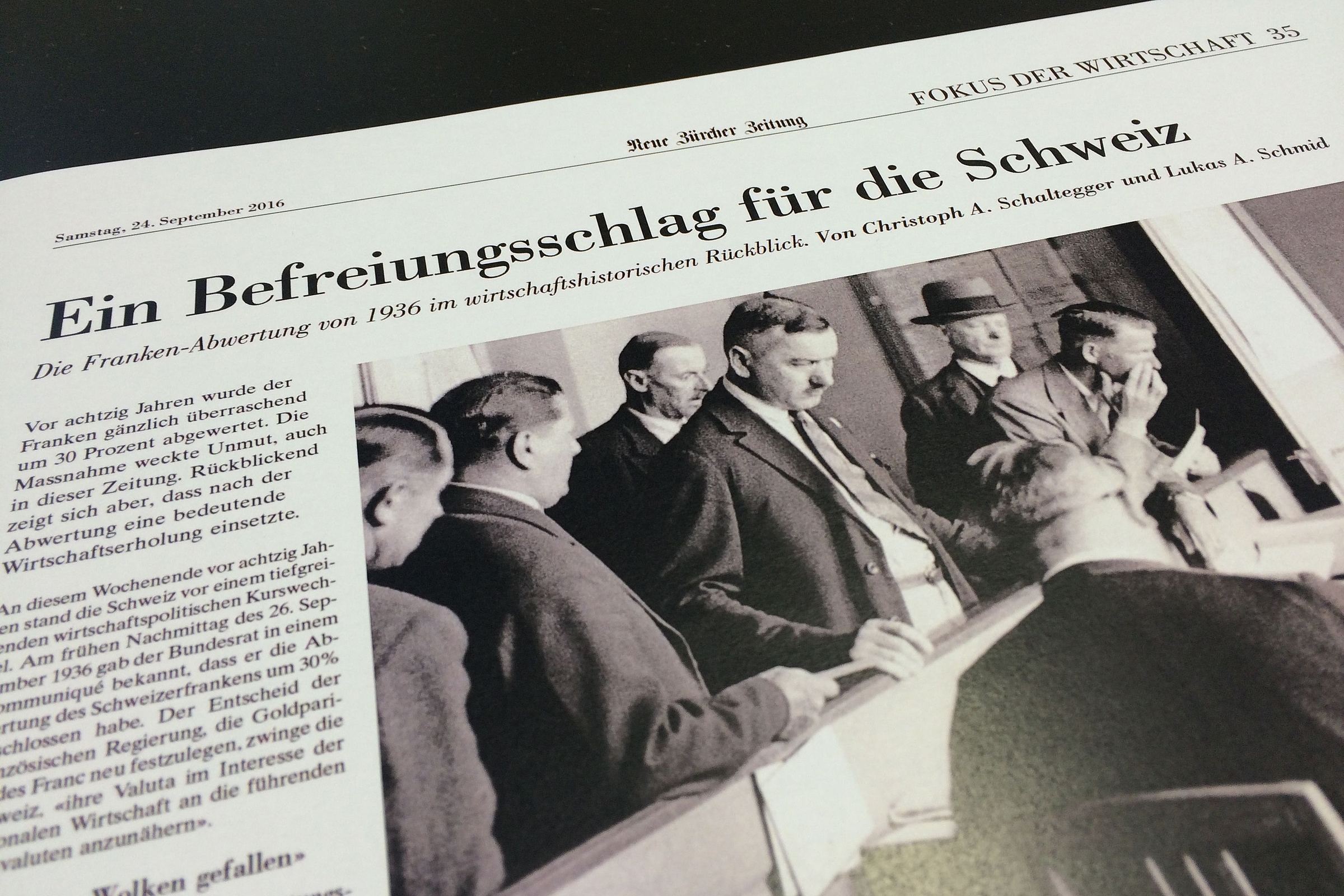 Prof. Dr. Christoph A. Schaltegger und wissenschaftlicher Assistent Lukas A. Schmid schreiben in der NZZ über die Franken-Abwertung von 1936 im wirtschaftshistorischen Rückblick.