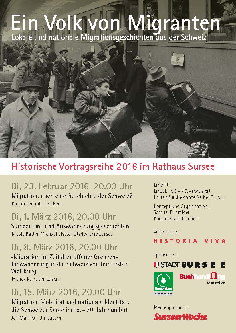 Historische Vortragsreihe 2016 im Rathaus Sursee, bei welcher auch Dozierende der Universität Luzern einen Vortrag halten, wie PD Dr. Patrick Kury und Prof. Dr. Jon Mathieu.